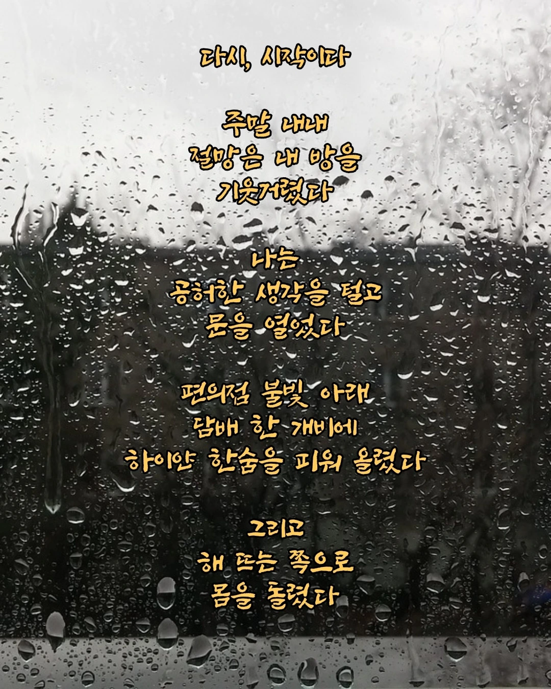 사회적으로는 박봉이지만 내 이웃 모두가 안전하고 서로의 지식과 지혜를 아낌없이 나누며 함께 성장하는 공동체를 꿈꾸는 대한민국 공무원입니다. 독서,글쓰기,운동을 루틴으로 합니다.