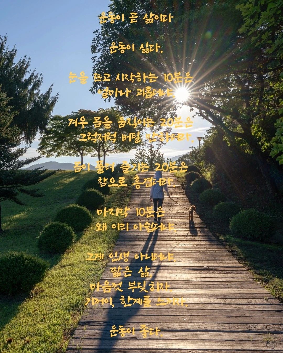 사회적으로는 박봉이지만 내 이웃 모두가 안전하고 서로의 지식과 지혜를 아낌없이 나누며 함께 성장하는 공동체를 꿈꾸는 대한민국 공무원입니다. 독서,글쓰기,운동을 루틴으로 합니다.