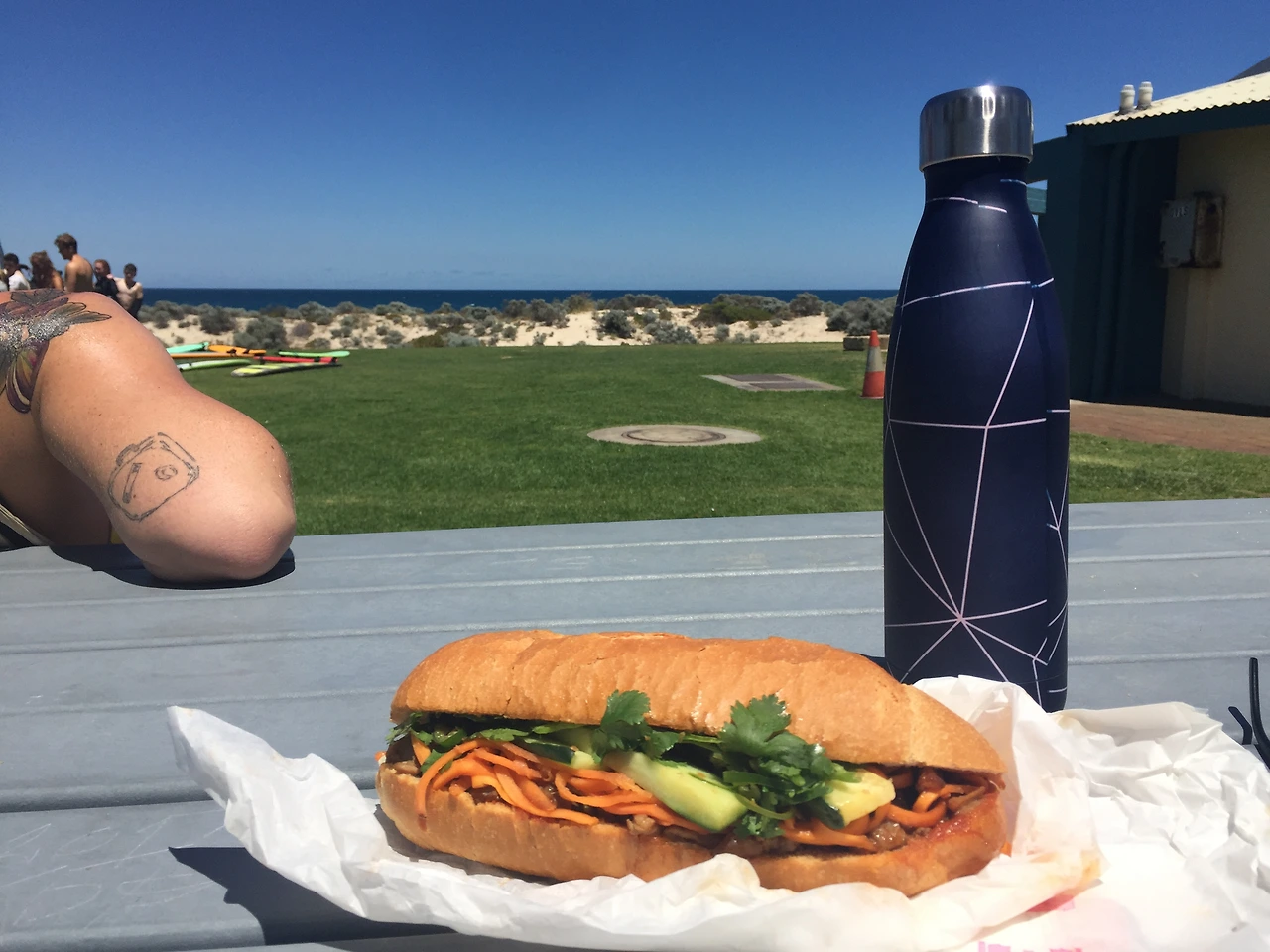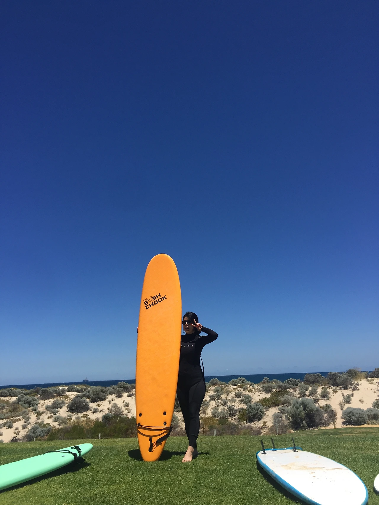 생각보다 너무 빨리 체력이 방전되었고 순간 어지러움까지 느낀 상황이라 다시 도전하고 싶은 마음이 싹 사라졌다. 나랑 키도 비슷한 호주 여자애는 참말로 패들링도 잘하고 챱챱챱- 잘가는데 나는 왜 패들링이 안되는 걸까. 보드 뒤에 숨어서 고개를 푹 숙이고 있었는데 서핑스쿨 대표님 아저씨가 "트라이 어게인" 해보란다. 트라이어게인 하다가는 내가 물에서 어게인 못나올것 같았다.
