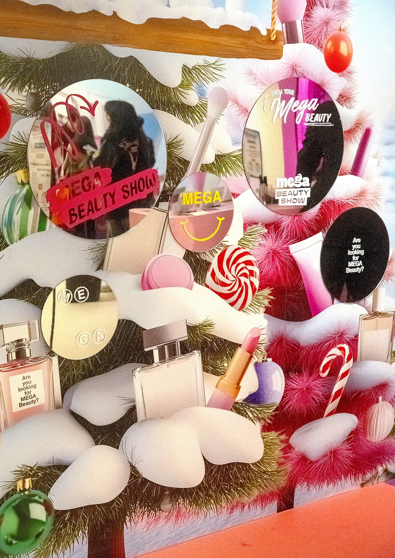 이번 프로젝트는 컨셉 자체가 이미 정해져 있었다. "ARE YOU LOOKING FOR MEGA BEAUTY?"라는 문장이었다. 나의 역할은 이 컨셉을 충실히 이해하고 그 속에서 해석을 더해 시각적으로 구현하는 것이었다. 키비주얼부터 행사장 공간 그래픽까지, 온라인과 오프라인 모두를 아우르는 작업이었다. 결국 핵심은 어떤 상황에서도 통일된 톤과 무드가 유지되도록 만드는 일이었다.