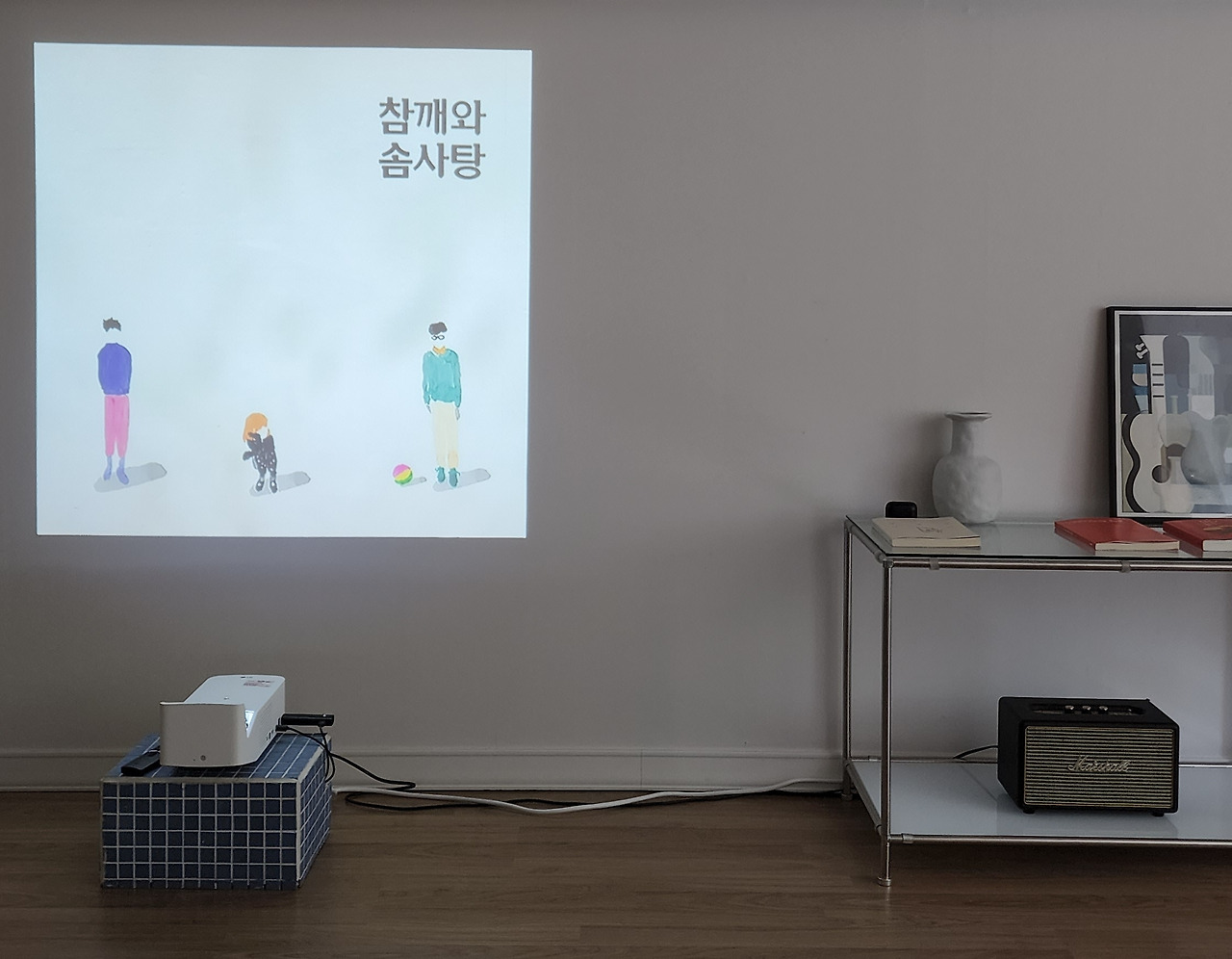 현관에 유난히 짙게 뿌려놓은 향이 들어오자마자 후각을 자극하였고 2층에는 소형 프로젝터로 영상과 함께 음악을 틀어놔 실제로 아이들이 "카페에 온 것 같아요"라고도 말하더군요.