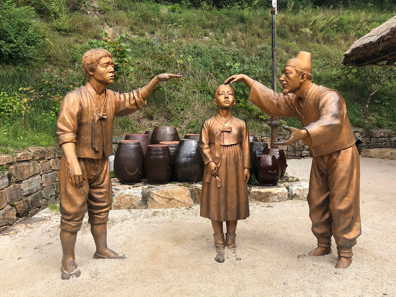 김유정의 고향이자 작품의 배경이 된 실레마을은 곳곳에서 김유정의 숨결이 느껴진다. 실레이야기길의 시작점인 '김유정 문학촌'에는 복원된 김유정 생가와 전시관, 소설 속 풍경을 재현해 둔 조형물 등을 볼 수 있다. 그중에서도 단연 내 눈에 띈 것은 <봄.봄>에 나오는 장면을 재현해 둔 조형물이다. 김유정이 1935년에 발표한 <봄.봄>은 순진한 주인공이 마름의 딸 ‘점순’이와 혼인하기 위해 데릴사위로서 약정된 머슴 노릇을 하면서 겪게 되는 일을 그린 작품이다. 조형물 옆에 적혀 있는 소설 속 대사를 소리 내어 읽어보면 소설 속 그때 그 시절로 뛰어든 듯한 착각을 일으킨다. 이 작품은 학창 시절에도 굉장히 재미있게 읽었던 기억이 있다. 특히 실감 나는 우리말 표현에서 느껴지는 구수함이 매력적이다.