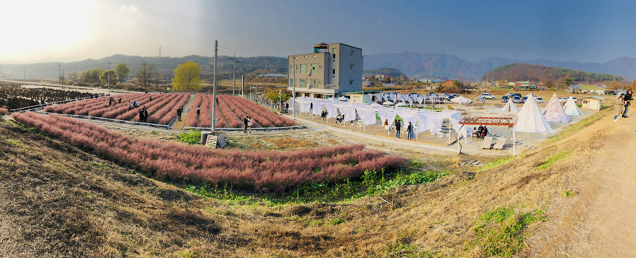 그래도 이 애매한 계절에, 들녘에 물든 핑크빛은 새로운 즐거움을 주긴 하나 보다. 이곳을 방문한 사람들마다 웃음 꽃이 활짝인 걸 보면.