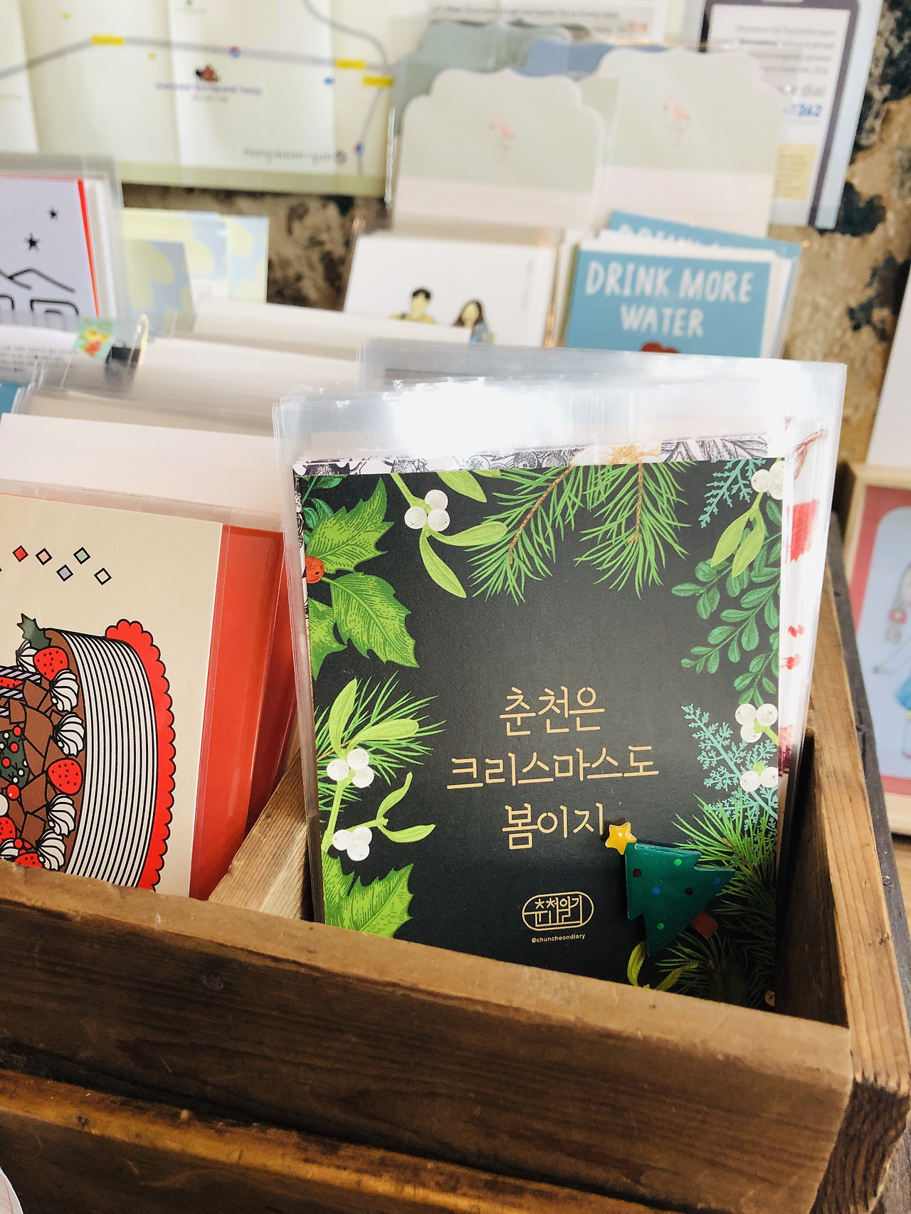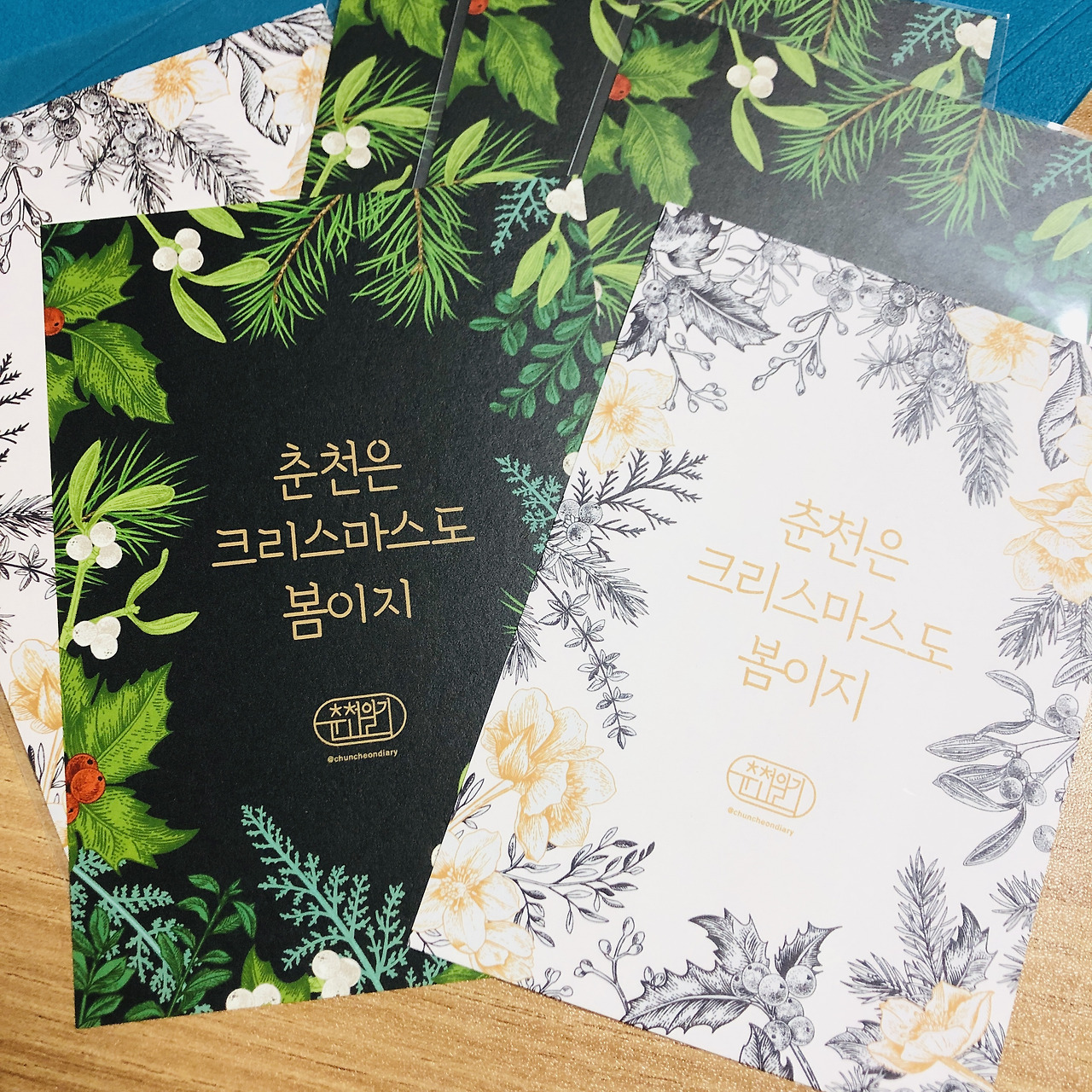 올해 카드는 육림고개 '춘천일기'의 크리스마스 에디션 엽서로 골랐다. 유안진 시인의 시, <춘천은 가을도 봄이지>의 시구를 착안해 만든 춘천 한정판 엽서다. 봄의 도시, '춘천(春川)'에서 전하는 이 크리스마스 카드가 다른 도시의 그들에게는 조금은 특별한 선물이 될 수 있지 않을까.