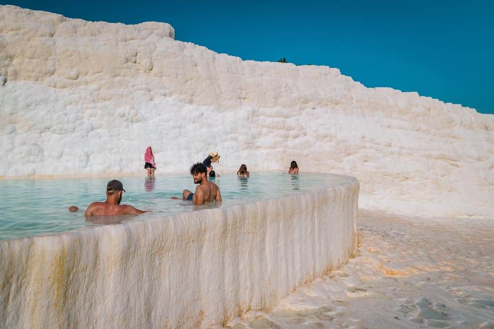 파묵칼레는 '목화의 성’을 의미하는데 단층을 뚫고 나오는 온천수의 칼슘 퇴적물이 형성한 독특한 지형지물 들로 만들어진 진귀한 광경 때문에 티르키에인들이 붙인 이름이다. 광물의 숲, 석화 폭포, 거대한 천연 휴게실의 단층 연못 등이 바로 그러한 광경에 포함된다.