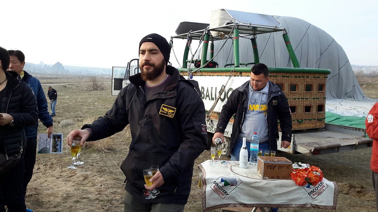 조종사들은 힘든 여정을 무사히 마친 기념으로 샴페인을 터뜨리고, 우리는 그 술을 나눠마셨다.