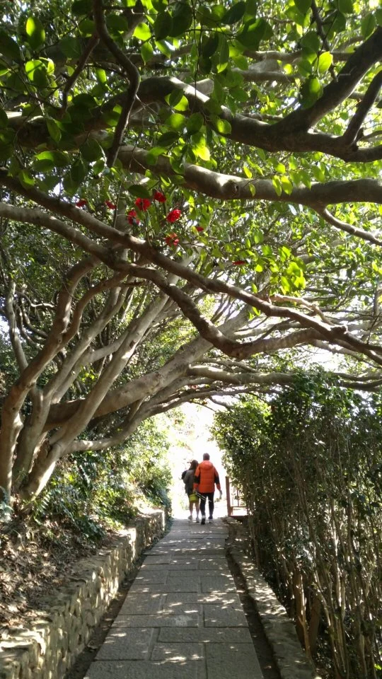 이제 막 꽃봉오리를 틔운 동백꽃들이 앞다투어 봄빛을 빨아들이고 있었습니다. 이미 피어난 꽃들과 이제 막 피어오르기 시작하는 동백꽃들의 향연을 느끼며 섬 깊숙한 곳으로 발길을 내딛습니다.