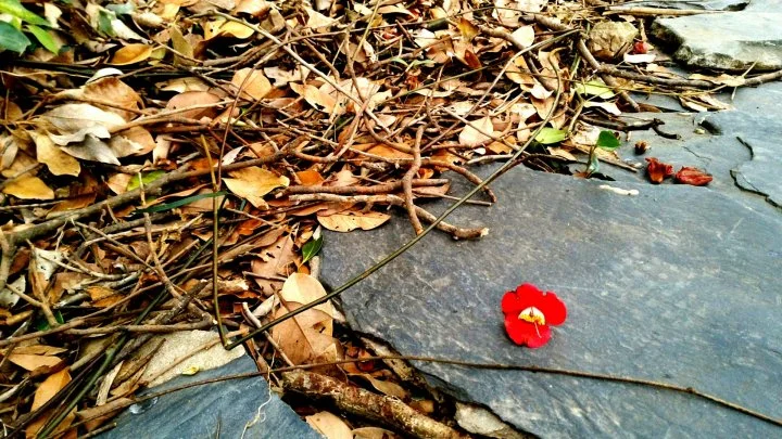 길을 걷다 보니 동백꽃이 처연한 모습으로 바닥에 떨어져 있습니다. 정말이지 가슴이 아리도록 처연하고 애처로운 모습입니다.