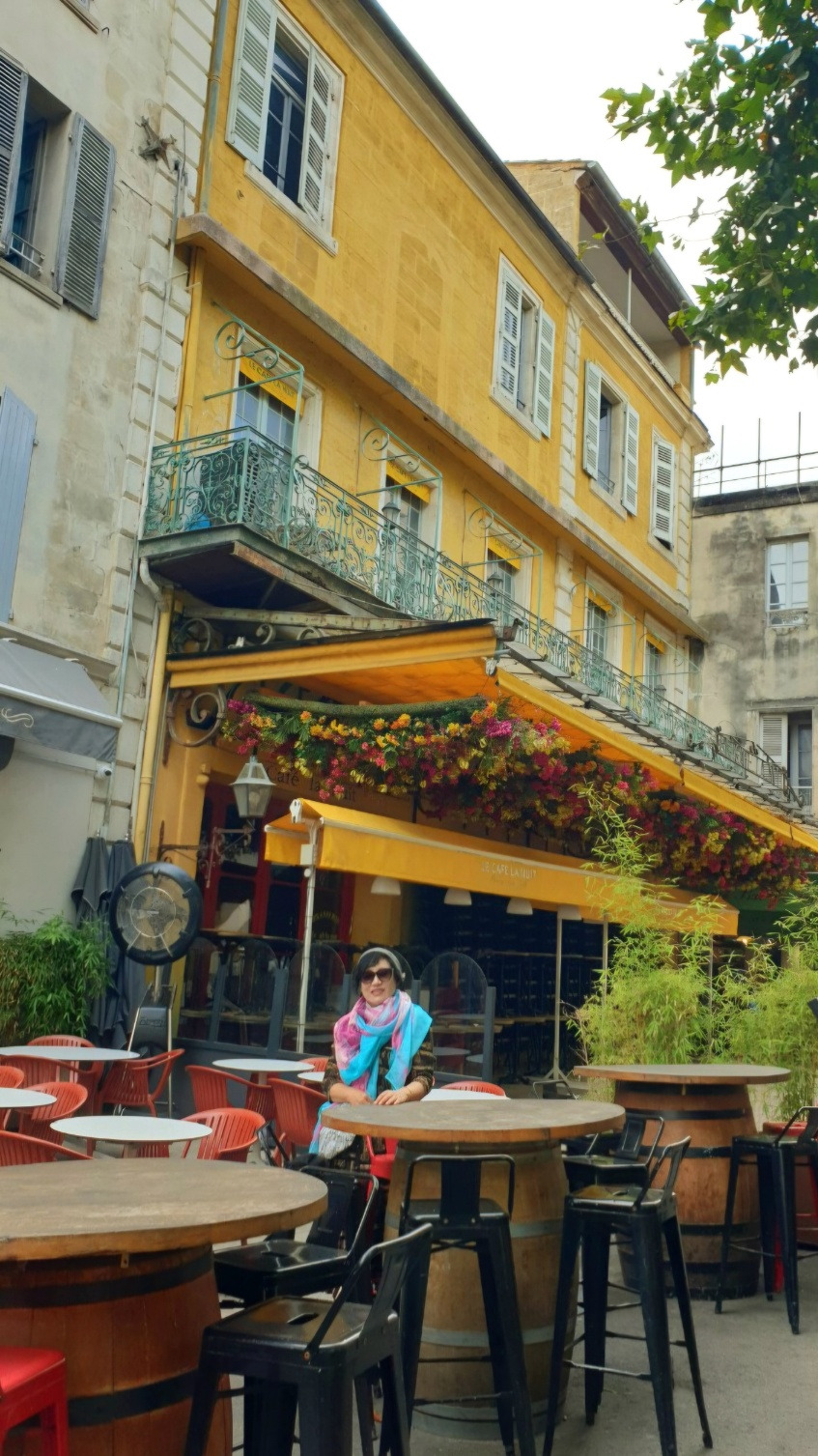 반고흐의 작품 중 유명한 ‘밤의 카페테라스’ 앞이다. 원래는 카페 색깔이 노란색이 아니었는데, 나중에 그림과 똑같이 덧칠했다고 한다.