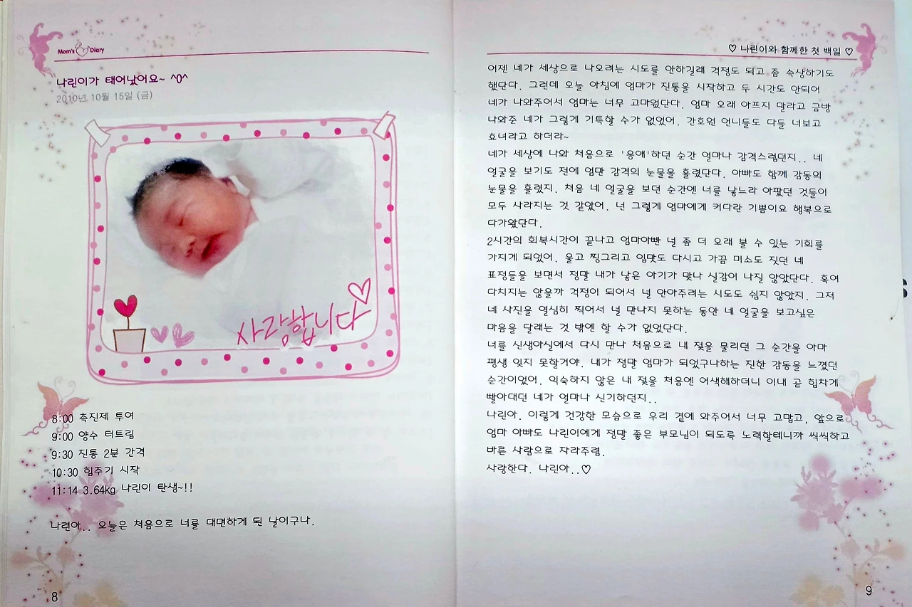 그러다 결혼을 하고 아이를 가지게 된 후, 뱃속의 아이와 함께 변해가는 일상들을 '육아일기'에 적기 시작했다. 적어둔 일기는 1년에 한 권씩 책으로 만들었다.