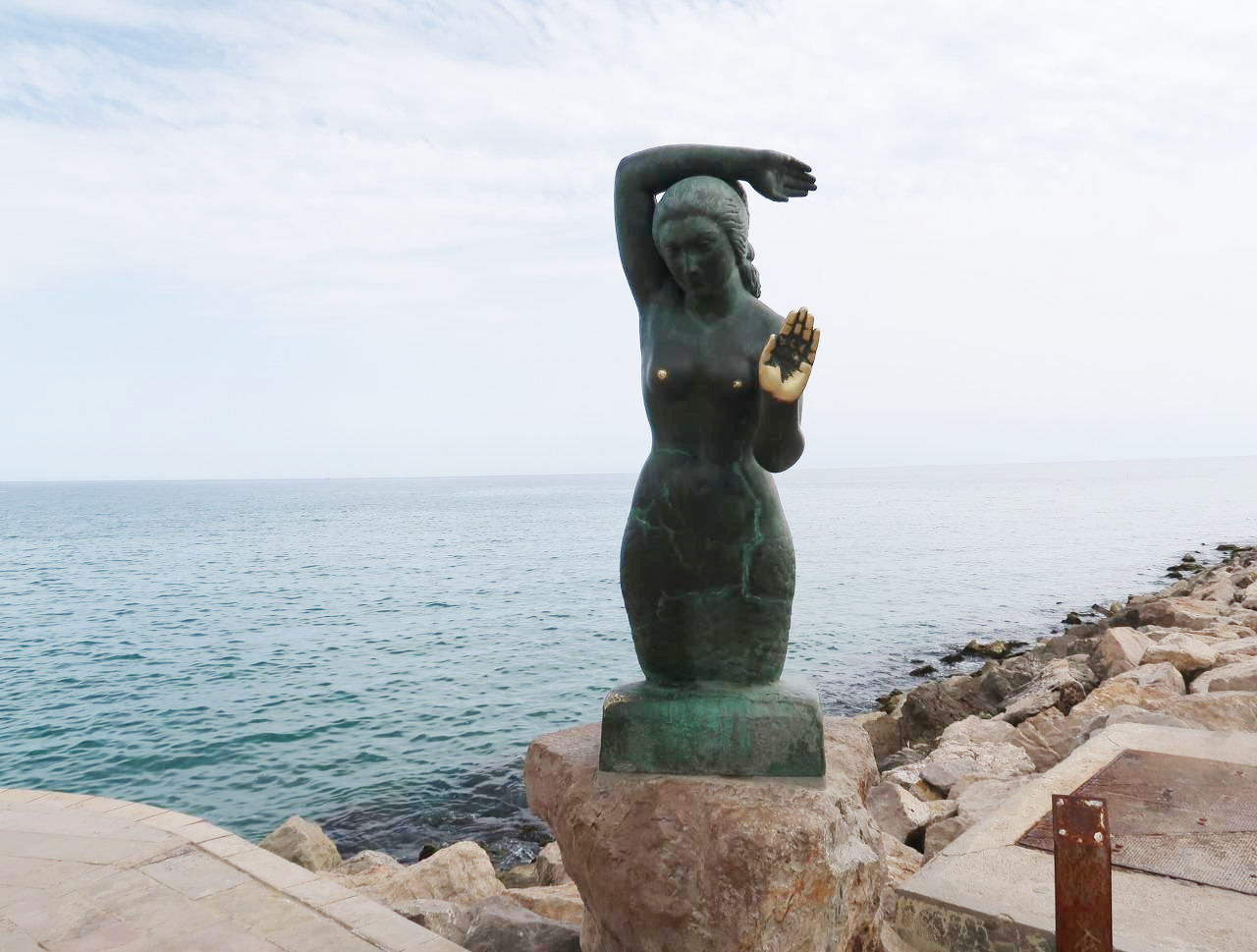 몬세라트 수도원을 뒤로하고 온 시체스(Sitges). 남편이 예약한 투어에 포함돼 있어 오게 된, 지중해 남부 휴양도시다. 바다 색이 금방이라도 풍덩하고 싶은 에메랄드 빛이라, 바다에 들어가지 않고 참고만 있기 힘들었다. 또 누드비치로 유명한 곳이라 그런지 각자 자유로운 복장으로 누워있는 것도 신기했다. 생각보다 '누드'차림은 많이 없었던 것 같기도. 드라마 '푸른 바다의 전설'에 나왔던 고풍스러운 골목길과 계단들을 걷고, 특정 부위만 만져지는 바람에 빛이 바랜 인어상과 시체스 영화제 포스터들을 구경하다, 점심을 먹으러 한 식당에 들렀다.
