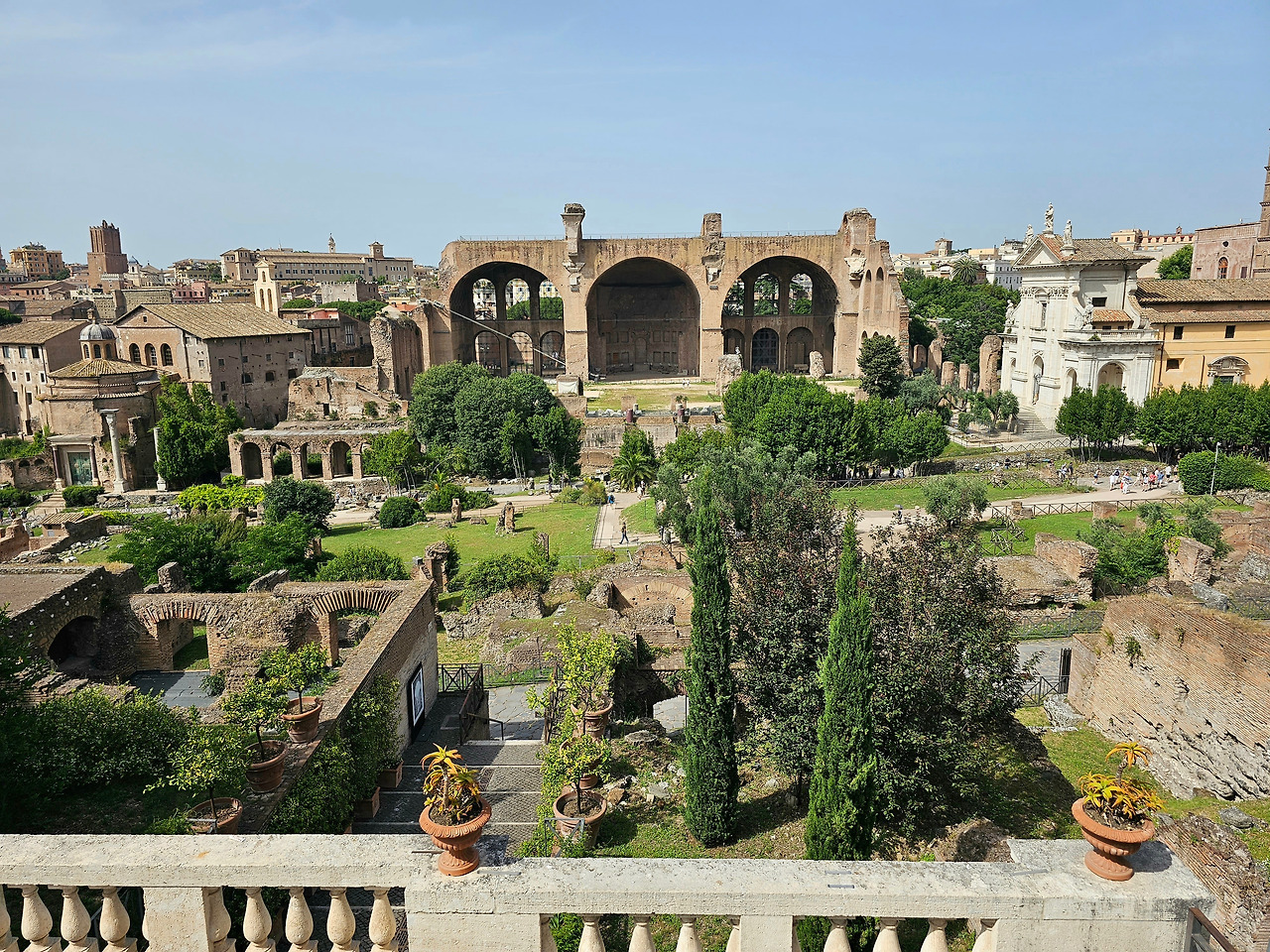 팔라티노 언덕을 보면서 먼저 포로로마노로 이동했다. 공부를 하고 갔으면 좋았을걸. 신전과 개선문이 막 흩어져 있는데 정말 사람이 살던 마을이구나 정도 짐작할 수 있었다. 무엇보다 너무 더웠다. 이어 예약한 시간에 맞춰 콜로세움에 직접 들어와 보니 스페인 타라고나에서 본 원형경기장은 미니사이즈였다는 게 느껴졌다. 고대 로마 유적 중 가장 큰 원형경기장의 위엄이 느껴졌다. 5만 명이 입장할 수 있었고 신분에 따라 자리가 층층이 구분돼 있고 기둥 모양도 달랐다. 가장 가까운 1층은 귀빈석, 가장 높은 4층은 천민의 자리였다. 바닥이 미로 모양으로 뚫려 있었는데 이곳에서 검투사와 맹수간 목숨을 건 혈투가 벌어졌다고 한다.