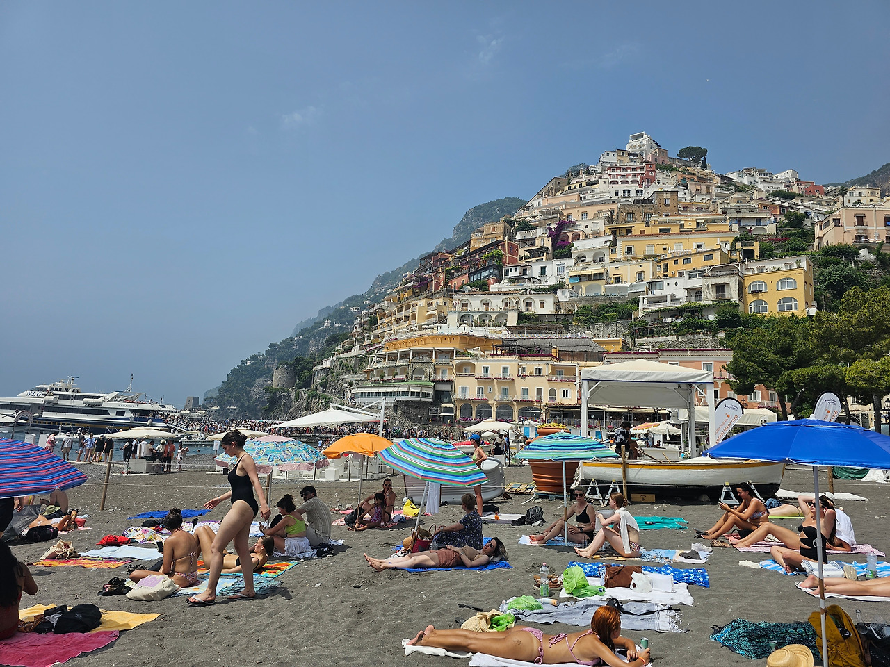 오늘은 남부투어를 하는 날이다. 아말피 해안도로를 따라 포지타노 도착. 해변이 생각보다 좁았고 우리는 근처에서 레몬색 돗자리를 펴고 나는 발을, 남편은 몸을 담갔다. 신나 하는 남편을 멀찍이서 바라보았다. 나는 지중해 돌멩이를 이번에도 수집했다. 예전에 니스에서 만난 어떤 아저씨가 자기는 해변으로 여행 올 때마다 돌멩이를 수집한다고 했는데, 그 이후로 나도 그렇게 하고 있다. 예쁜 마을이었지만 시간 제약 때문에 맘이 쫓겼다. 그래도 투어 덕에 편하게 이곳을 방문할 수 있었다.