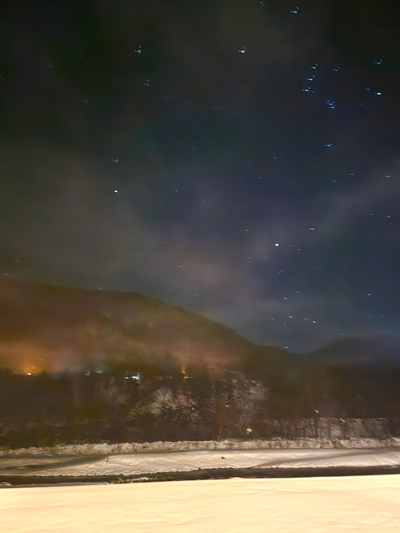 6시에 눈을 떠서 료칸 근처 동네 산책을 했다. 완전히 밝지 않았을 때의 이 고요한 느낌이 너무 좋다. 첫눈챌린지 릴스도 도전했다.