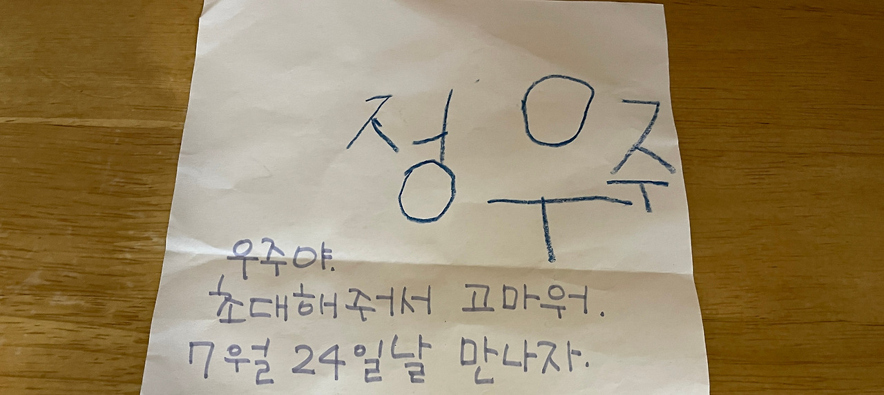 친구한테 초대장을 내미는 게 부끄러워, 아침에 일어나서 계속 그 생각으로 고민했을 우주는 그제야 얼굴이 밝아졌다. 친구들 가방 앞에서 서성일 우주를 생각하며 담임 선생님에게 알림장을 보냈다. 우주가 친구를 초대하고 싶어 초대장을 만든 이야기와 초대장을 직접 주기 부끄러워 가방에 넣어두기로 했단 이야기, 그래서 아마 오늘 우주가 친구들 가방 옆에서 서성일 것이니 이해해달란 이야기를 덧붙였다. 친절한 담임 선생님은 우주를 도와 친구들 초대장을 가방에 넣어주고 엄마들에게도 따로 연락을 해주었다. 그렇게 처음으로 나는 우주의 유치원 친구들을 집으로 초대할 수 있었다.