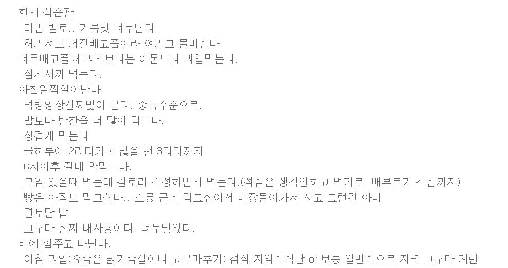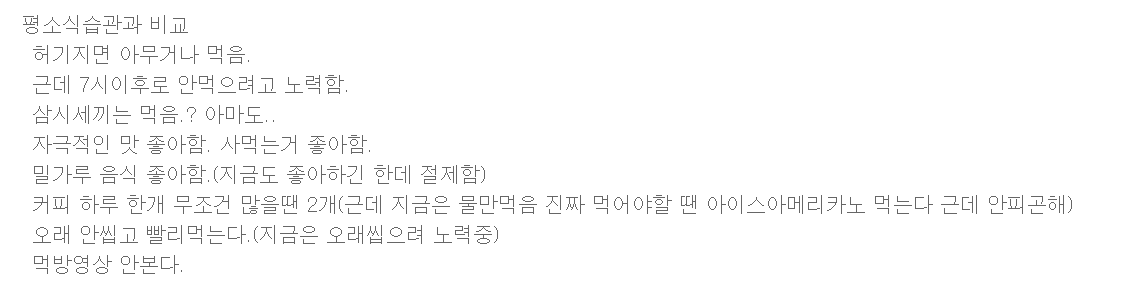 다음은 목표 몸무게 달성 후 개인 블로그에 작성했던 글의 일부이다.