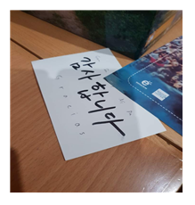 순례길에서 인연을 맺을 때마다 ‘감사합니다’ 캘리그라피를 적어서 전달했다. 내가 걷는 길에 등장해서 도움을 준 그들에게 감사함을 표현하고 싶었다. 이해를 돕기 위해 그 나라 언어로 적어가면서 어떻게 읽어야 하는지 알려주었다. 독일, 스페인, 이탈리아 등 10개 국적 이상의 사람들을 만났는데, 나라마다 감사함을 전달하는 ‘말’은 달랐지만, 어떤 언어로 전달하던지 간에 그 의미는 변하지 않았다. 언어는 소통 전달의 매개체이지만, 본질은 사람의 마음이라는 건 세계 어디서나 같았다.