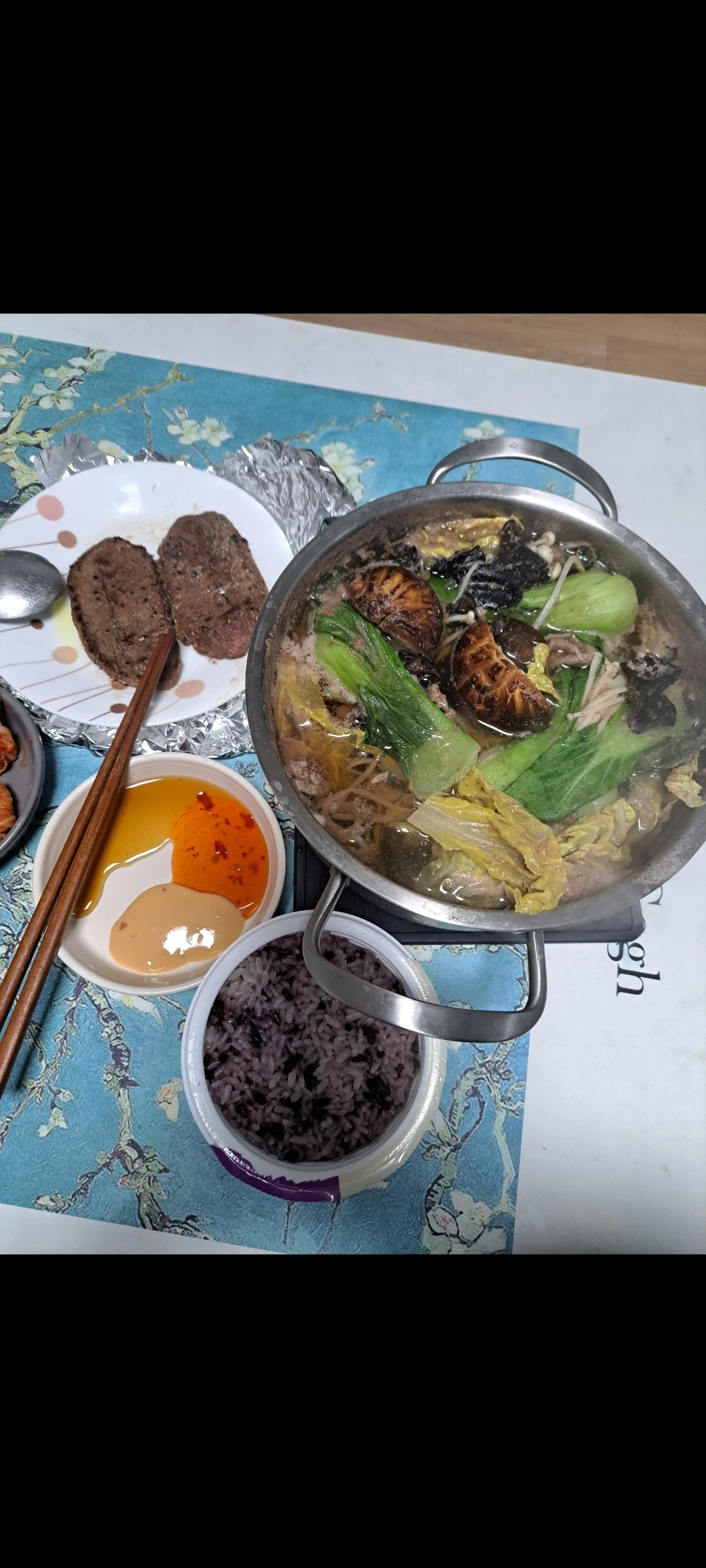 크리스마스날에는 부채살 구이에 밀푀유나베도 해먹었다.