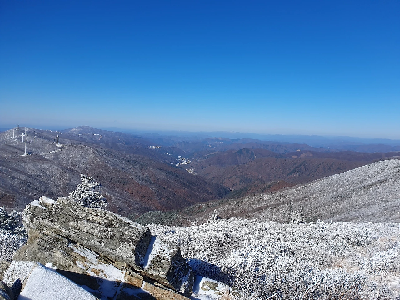 함백산 해발 1,572미터. 봄에서 겨울로 계절이 바뀌는 동안 여러 차례 올라갔었다. 산정상에 서서 시계 방향으로 한 바퀴 돌면 경상북도 봉화, 강원도 영월, 사북, 정선, 삼척, 태백 지역을 내려다볼 수 있다. 북쪽 매봉산에서 두문동재, 남쪽 가까이 태백산과 멀리 소백산 자락을 잇는 백두대간이 한눈에 보인다.
