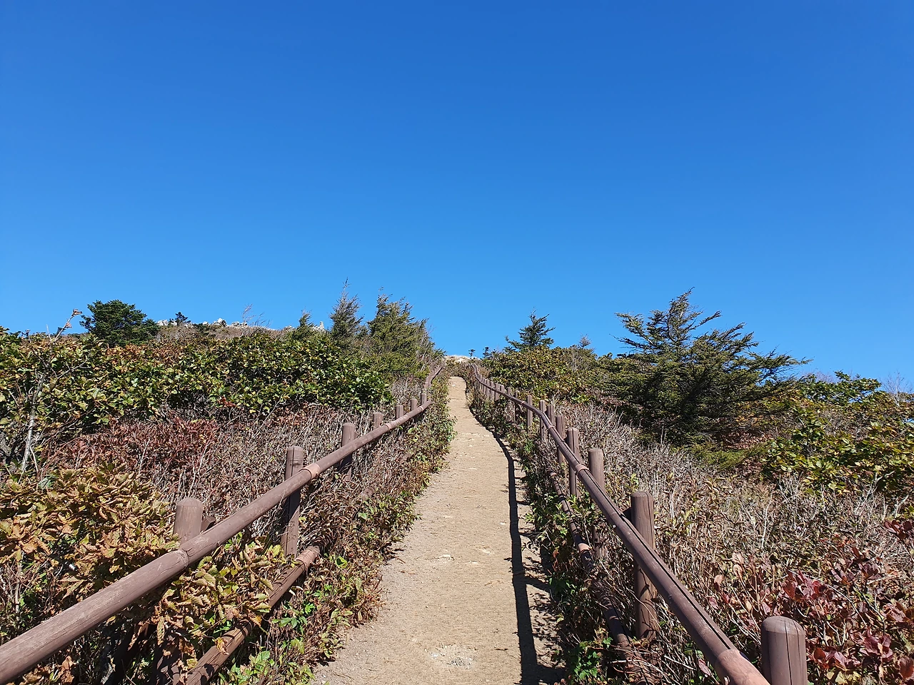 그다음 따라오는 사람은 중년의 한국인 여자 스님이었다. 그분은 서로 지나치는 짧은 시간에 정상에 등산로를 거쳐 올라갔었는지, 이 포장도로로 정상까지 가는 길이 괜찮은지 물어보았다.