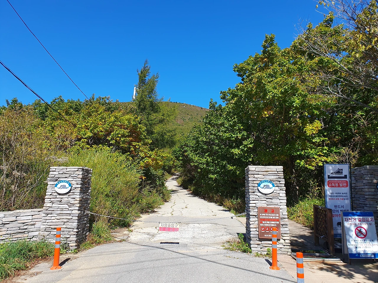 해발 1,350미터까지는 자동차로 오를 수 있다. 우리나라에서 일반인이 자동차로 올라갈 수 있는 가장 높은 도로다. 도로변에 주차하고 25분 정도 걸어 올라가면 정상에 도달한다.
