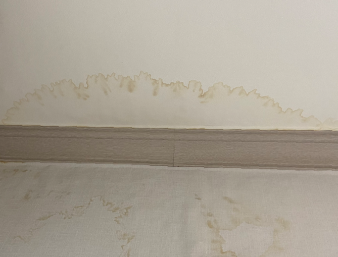 방 안으로 다시 들어와 물이 어디서부터 흐르는 건지 눈으로 로 찾기 시작했다. 벽지 윗면에서 흘러내려온 모양새였다.