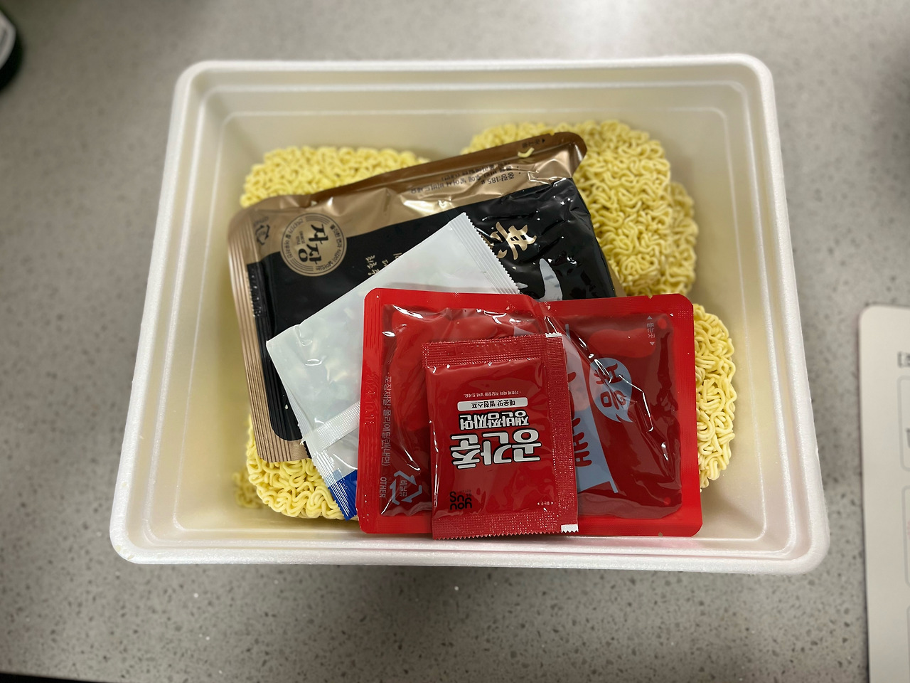 도시락 사발면 8개가 들어있는 점보 도시락이었는데, 반정도만 먹고 배불러서 먹지 못한 기억이 있다.