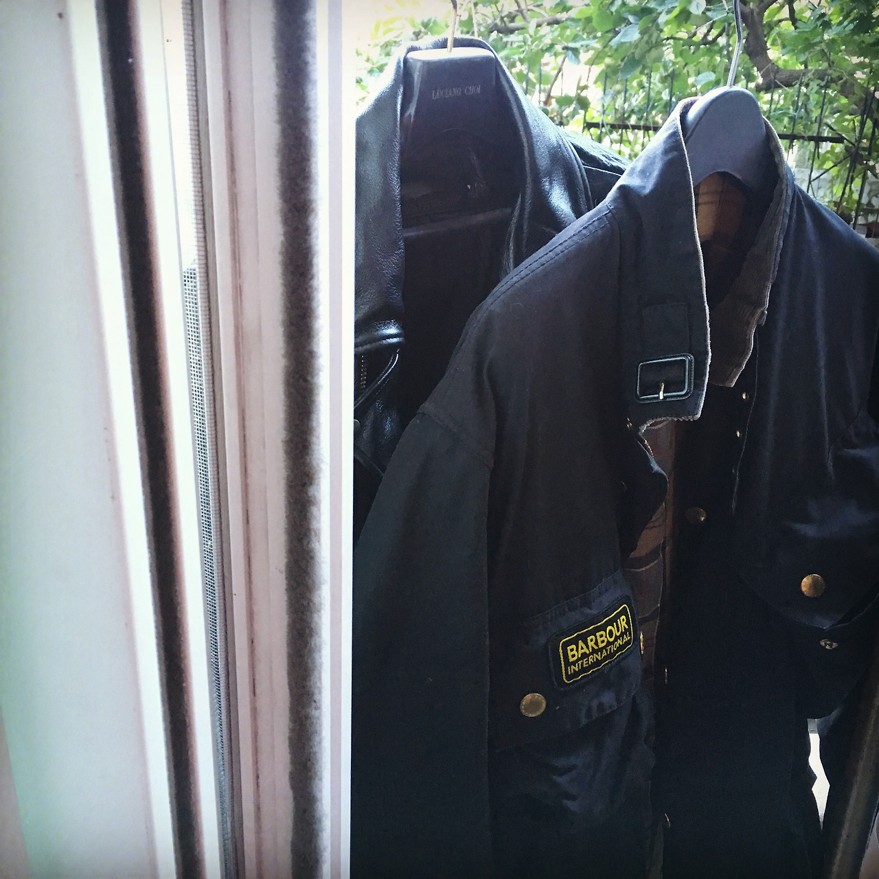 왁스 칠이 된 바버 재킷과 가죽 라이더 재킷이 엉망이 된 것이다.