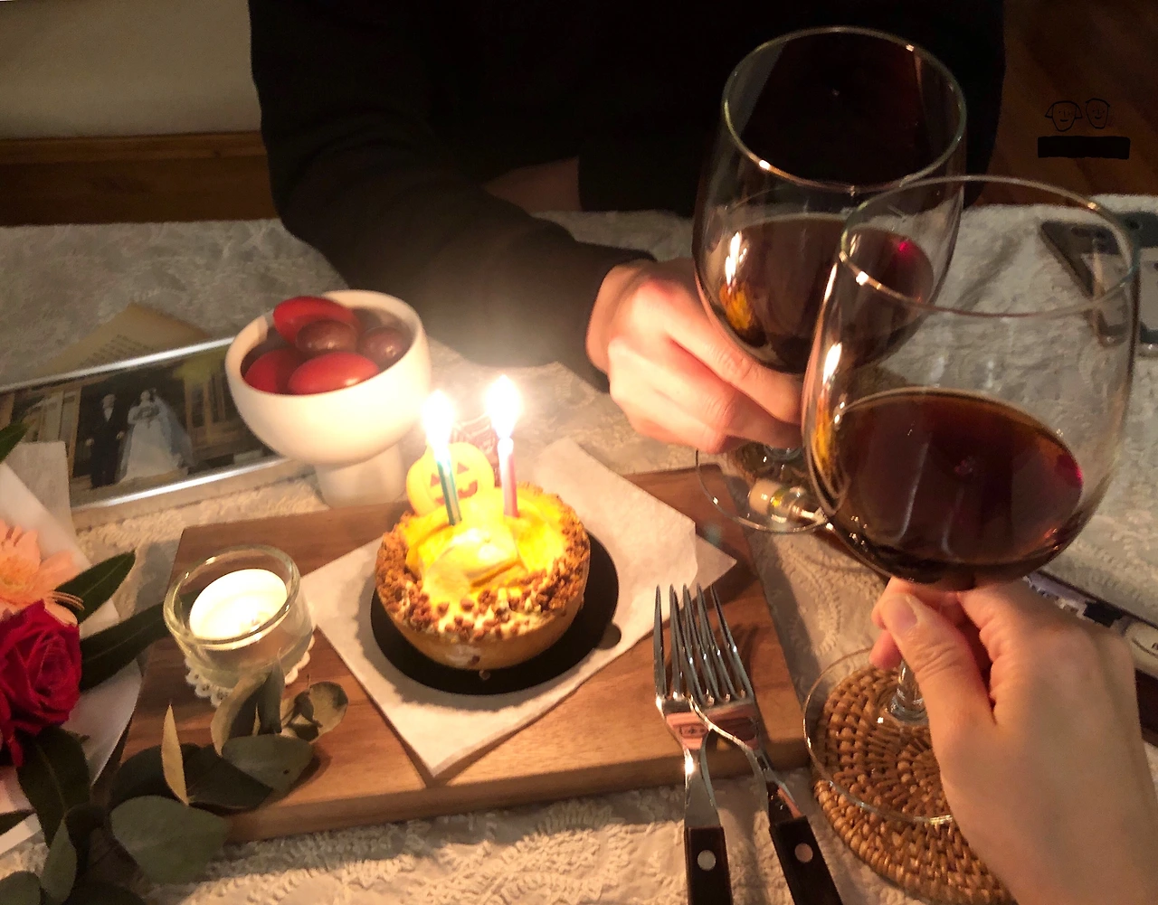 와인의 코르크 마개를 열다가 오프너는 박살이 났지만, 그래도 로맨틱한 우리집이었다. 귀여운 호박케이크에 초를 꽂고 함께 후- 불어 본다. 헤헤. 남편의 또각또각 손편지까지 받고 갑자기 폭풍눈물을 흘리는 이숭이. 그러다 또 웃는 이숭이. 결혼식에서 광대 승천하던 날이 엊그제 같은데, 시간이 금방 가버린 것 같아 놀랍다. 하나도 소중하지 않은 적 없었던 2년의 시간들. 모든 날, 모든 순간을 함께여서 기쁘다고. 고맙다고. 행복하다고.