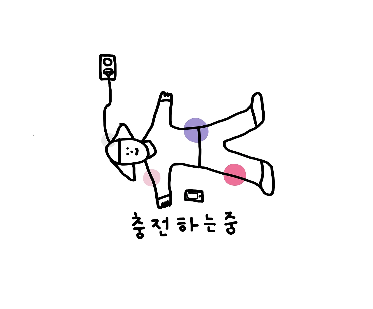 요리책을 보면서 음식을 해 먹을 줄 알았는데 먹는 건 과자였나. 수납장에 이것저것 채워놨는데 빈 공간이 생길 정도로 잘 먹고 있다. 남편은 목공놀이를 하면서 사포질, 스테인을 바른다. 나는 어제 페어에서 받아온 명함과 스티커들을 만지작 거리면서 하나씩 넘겨 본다. 그림도 그리고 야끼소바도 먹고 밀감을 먹었다. 틈만 나면 누워있는 우리. 나도 충전 중, 남편도 충전 중, 우리 둘 다 징하게 충전하는 중이다.