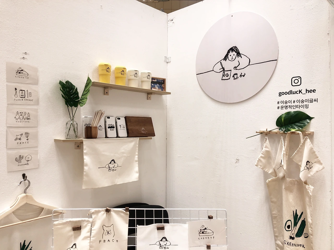 조금 늦게 도착했지만 그래도 널널했던 덕분에 짐을 부스까지 편하게 내리고 하나둘씩 채워갔다. 부스 크기는 혼자 앉으면 꽉 찰만큼 작다. 그럼에도 든든한 지원군 노란언니랑 이틀을 보내고, 남편과 이틀을 지킬 계획이다. 혼자서면 느려 터졌을 부스 꾸미기. 아직 미완성, 미완성 미완성이지만 내 이름이 걸린 부스가 생겨서 참말로 좋다.