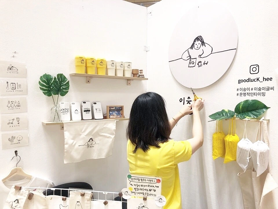 결국 간식 먹을 타이밍을 못 찾았다... 여유 부릴 시간도 없고 부스를 준비하고 보니 오픈 시간이었다. 날씨 때문에 여유롭던 공간이 어느새 사람들로 차 있다. 오늘도 인사를 나누며, 이숭이월드로 사람을 끌어당겨본다. 그러다 코엑스 안에 너무 많은 인파들로 프리 와이파이가 끊기는 상황이 발생했다. 다들 답답함을 호소하는 와중에 격한 리액션으로 이숭이월드를 좋아해 주셔서 행복하고 벅차올랐다.