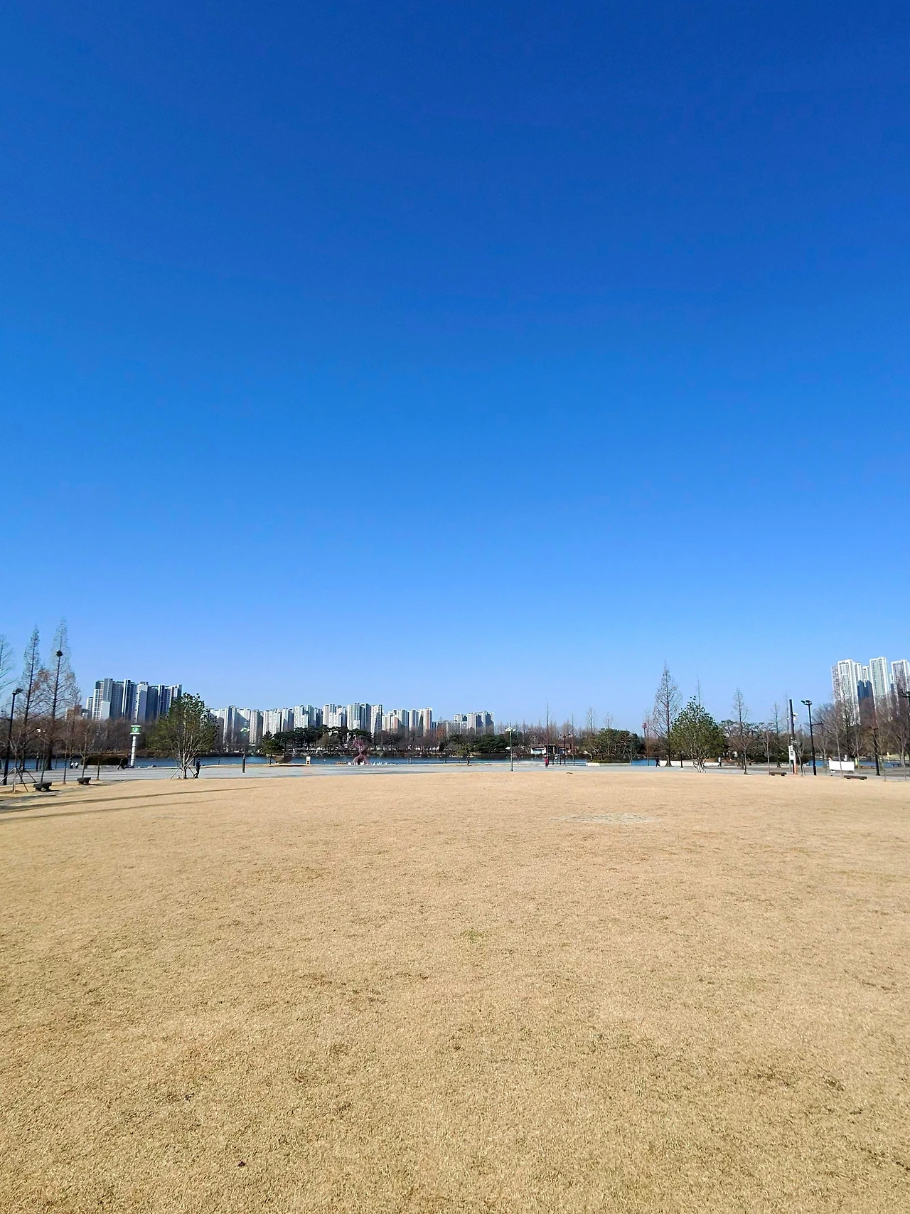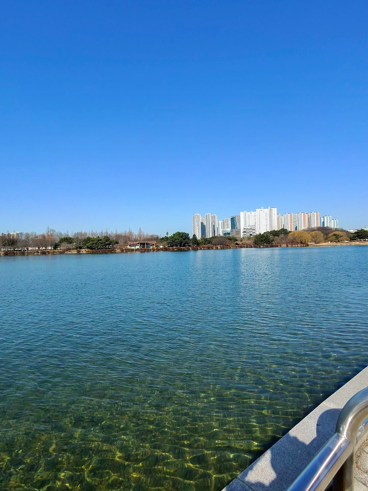 3월중순에 오자마자 일산호수공원에 산책을 나갔다. 그때 하늘은 그래도 맑은편이었다.