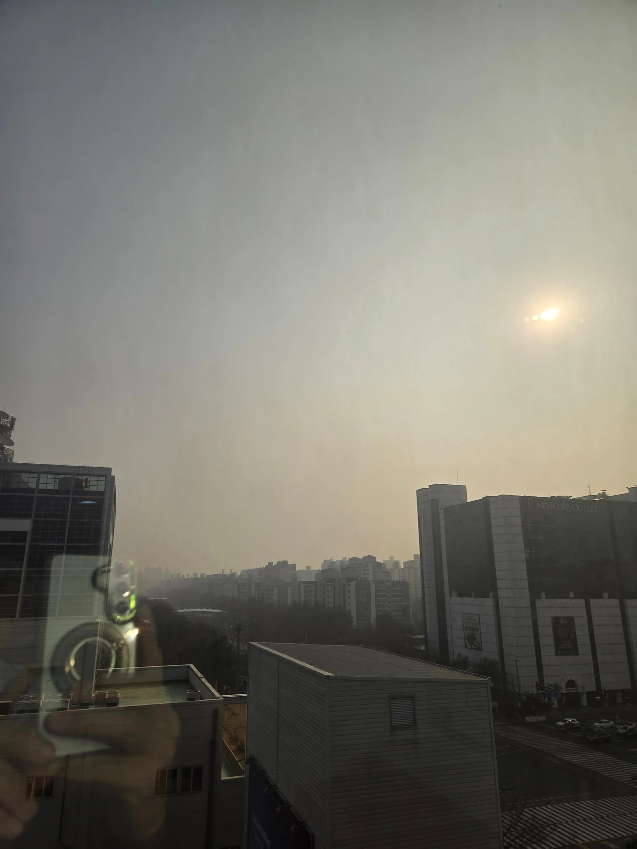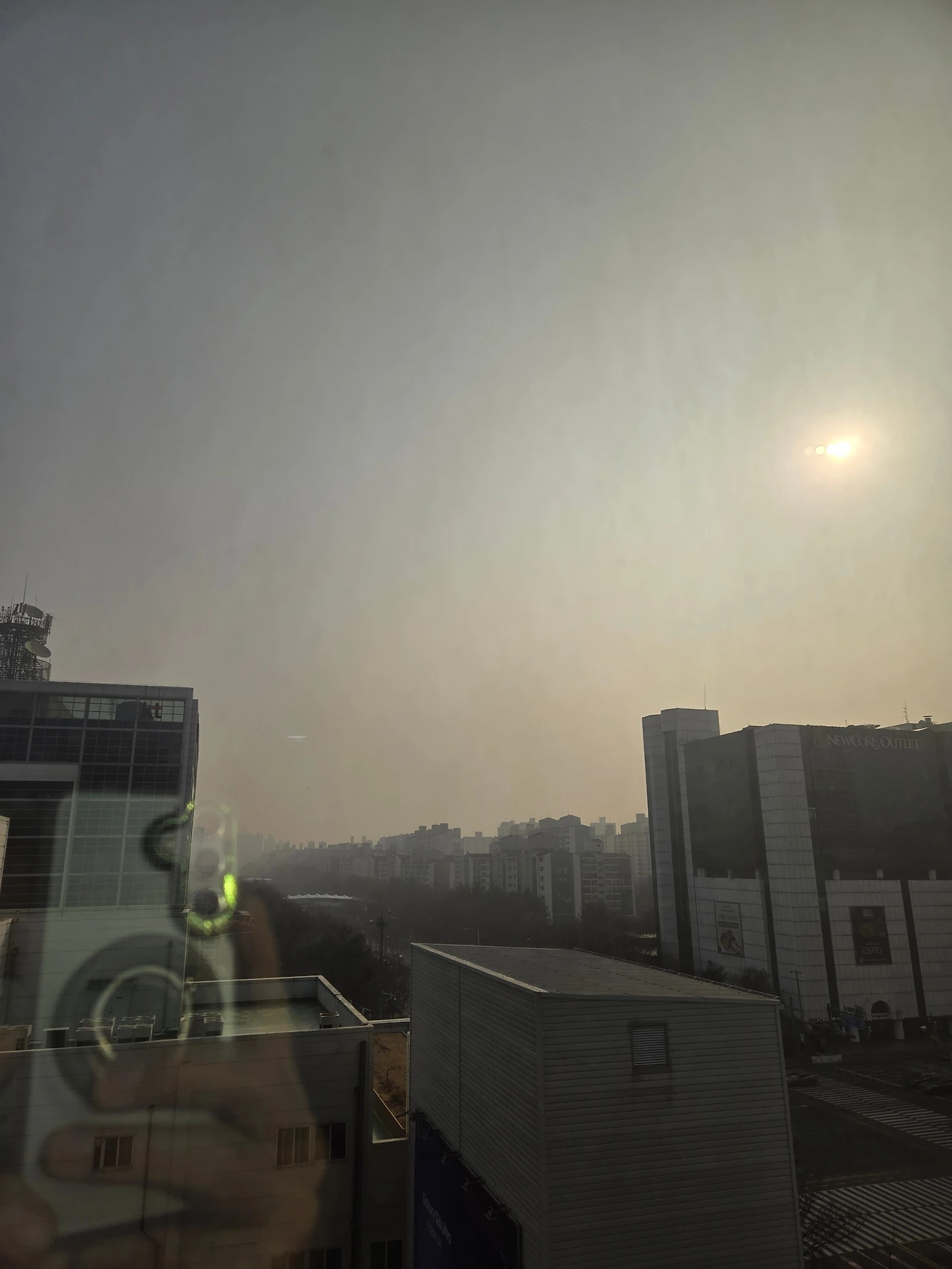 오늘 아침 일산의 오피스텔7층복도의 창에서 바라본 하늘이 참 뿌옇기도 하다.