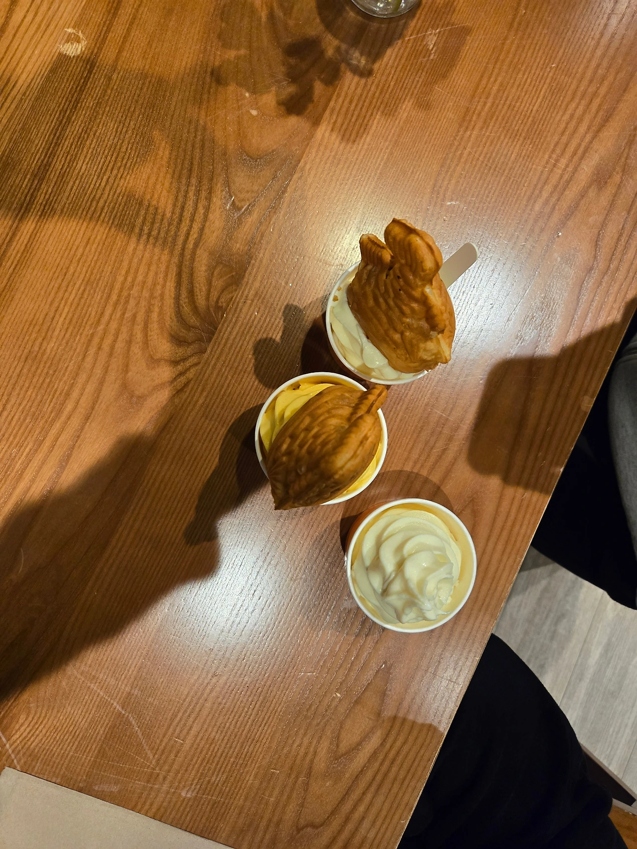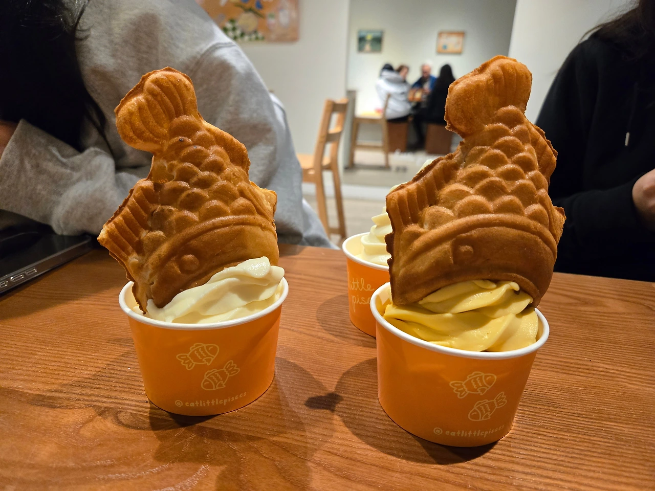 비가 쏟아짐에도 그 넓은 주차장이 자리를 찾기 힘들다. 다행히 위치가 좋은곳에 주차하는데 바로 앞가게가 요즘 한창 MZ 세대에게 인기라는 일본식 아이스크림 붕어빵가게이다. 1시쯤인데 점심을 먹고 온 젊은이들로 북적인다.