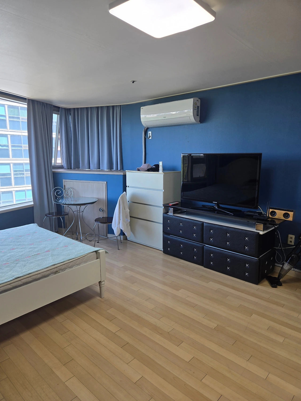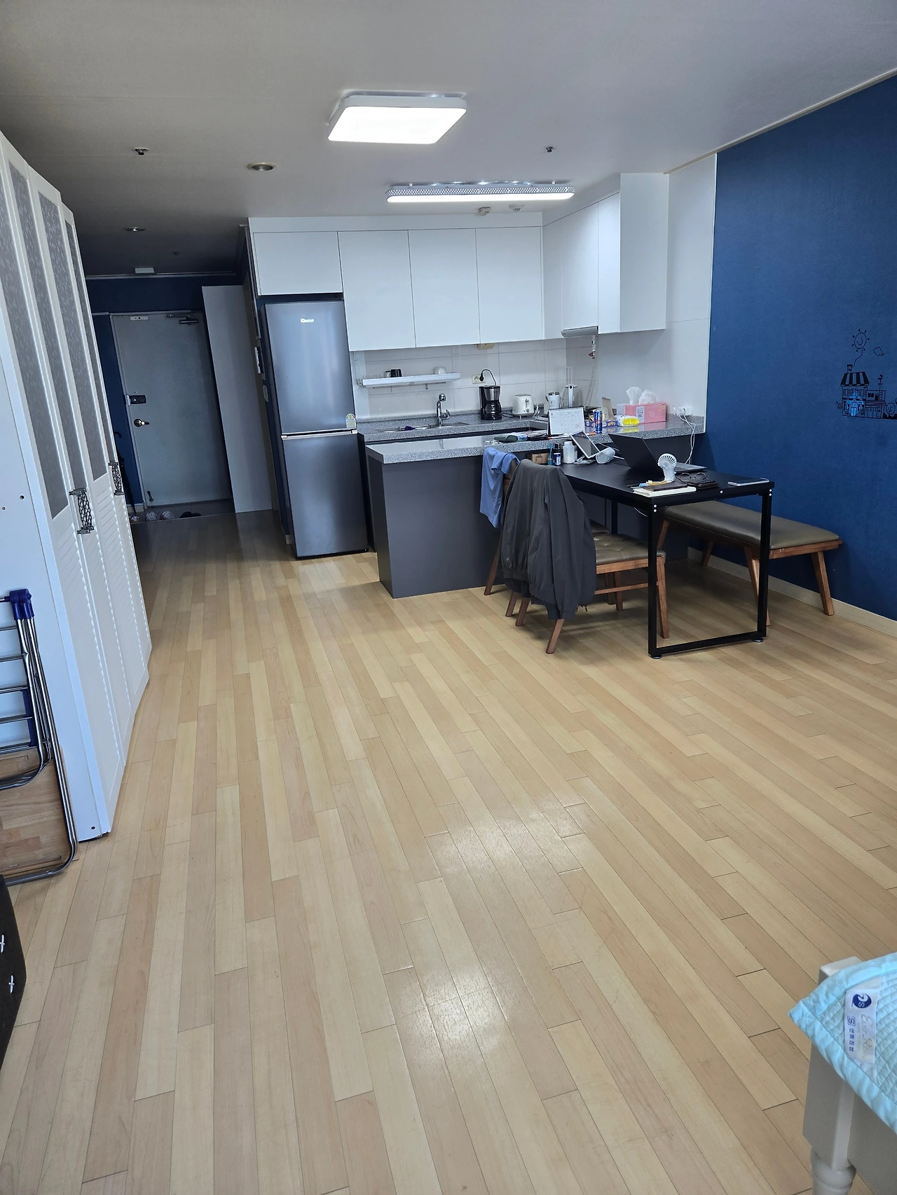 최근의 힘든 시기에 대한 보상으로 우리도 한달살이라는것을 10월에 해보자라고 얘기했지만 막상 집을 얻을때에는 마음에 드는 집을 구하느라 9,10월 두달 오피스텔을 얻게 된다. 실평수가 14평인 파란색을 좋아하는 나에게는 파란색벽지로 되어 있어 보자마자 마음에 들어서이다. 일산호수공원바로 앞에 있고 라페스타와 같은 먹자골목과 다양한 시설들이 어울러져서 일산이 많이 쇠락하긴해도 내게는 풍동이란 작은 마을에 있다 도회지로 나온 느낌이다.