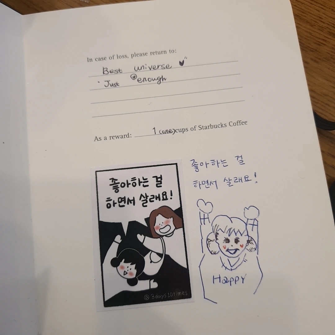 마음에 드는 스티커를 사서, 다이어리에 딱 붙여주면 마음이 편안해지고 기분이 좋아지는 사람이다. 내 기분 상태와 요즈음 근황 그리고 내 생각들을 잘 표현할 수 있는 스티커를 고르고 적절한 곳(노트, 다이어리, 벽, 컵 등)에 붙여주는 일명 '스멍' (스티커 멍 때리기)을 한다. 우아하게!