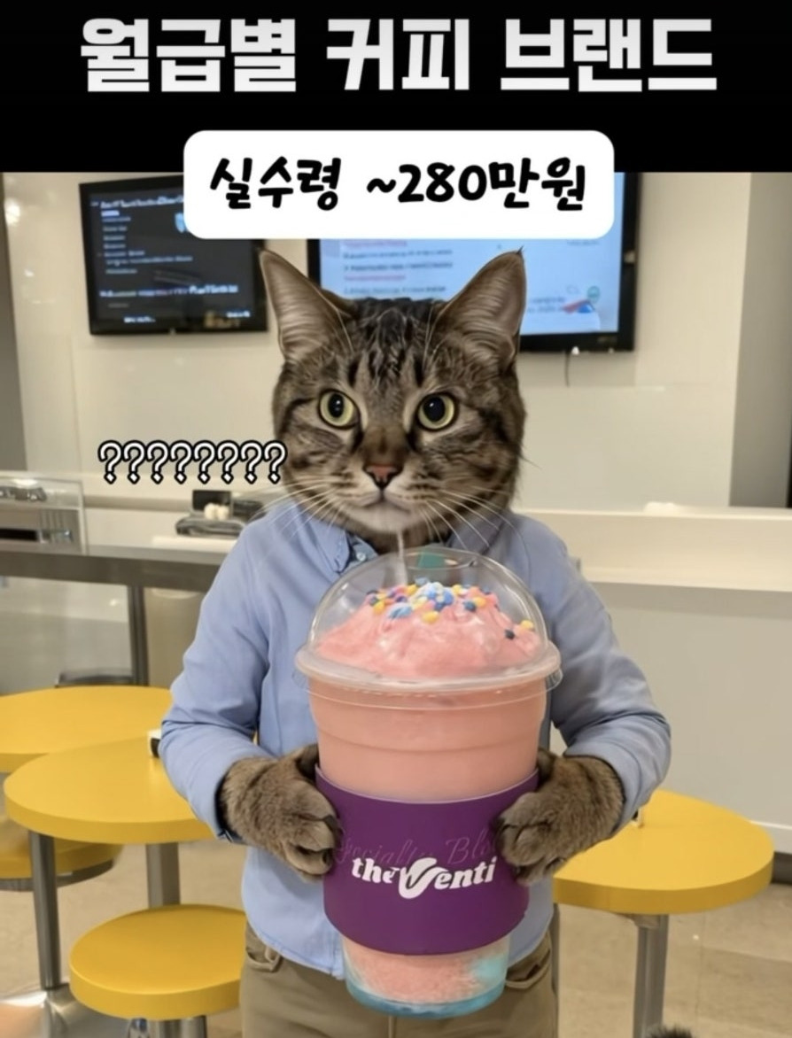 - 어떤 미디어 매체에서 봤는데, 월급에 따른 커피브랜드도 있지 않던가 그렇듯 브랜드커피가 주는 자아인식이 있는 것이다.