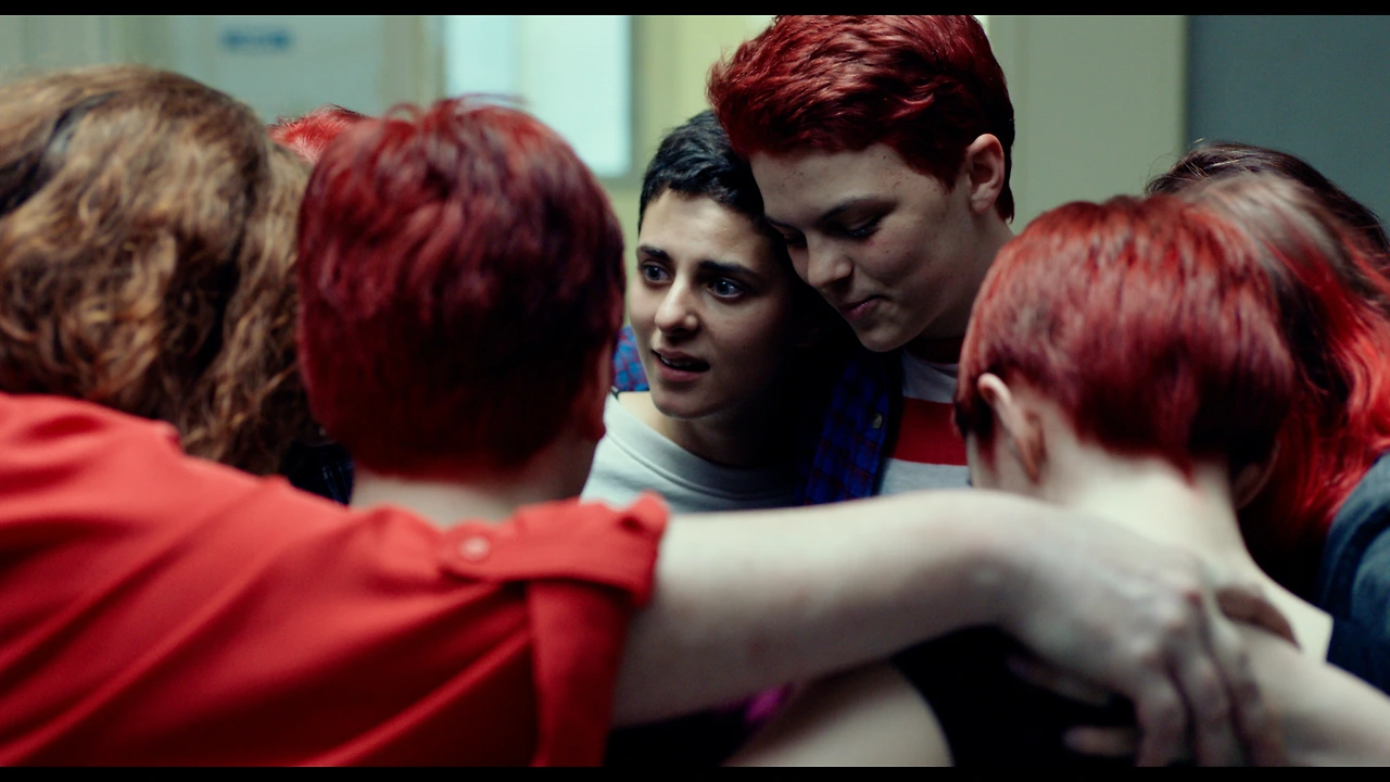 하지만 안티고네를 가족을 지키기 위해 목숨을 바치는 여성 영웅 정도로 해석한다면 그의 일부만 해석한 것이다. 우리는 가족과 남성 연인을 지키기 위해 목숨을 바치는 여성 주인공의 희생을 그리는 서사를 여러 차례 읽은 바 있다. 비슷해 보이지만 안티고네의 선택과 저항은 가족 공동체 존립 이상의 의미이자 야망을 품은 지도자의 일대기로도 보인다. 단지 오빠를 지키기 위한 소녀 가장 정도로 그의 행위를 규정한다면 가족 전체가 공범이 되어 돌이킬 수 없는 파국으로 뛰어드는 방법보다는 오히려 모든 책임을 홀로 지는 편이 더 타당한 선택이었을 것이다. 하지만 안티고네는 자신의 신념을 실현하기 위해 적극적으로 가족과 연인, 친구를 활용한다. 그의 행위는 젊은이의 무모함보다는, 불확실한 운명 속에서 끊임없이 위치를 재설정하며 자율성을 가진 인간의 새로운 영역을 개척하는 고집스러운 혁명가와 닮았다. 영화 중반 안티고네의 머그샷으로 만든 붉은색 선전 포스터는 체 게바라의 유명한 이미지를 떠올린다. 간결한 문구와 인상적인 퍼포먼스, 그리고 극적인 성장 배경은 사회운동가로서 사람들의 마음을 움직이기 충분하다. 감독은 안티고네가 가진 불복종과 혁명의 이미지를 확장하며 이를 시민 전체의 투쟁으로 넓힌다.