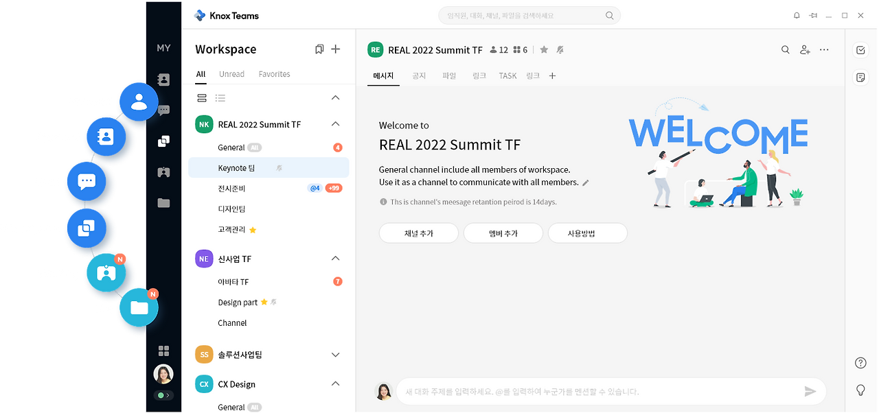 자동 잠금 기능 말고도 유용한 기능들이 많다. 중요 메시지 따로 저장, 예약 발신, 심야시간 안내, 발신 취소 기능들로 직원의 워라벨과 에티켓을 소중히 지켜준다. 타 회사와 미팅을 할 때에는 오픈 채팅 기능을 통해서 초대가 가능하다.