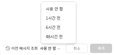 그러고 보니 인턴 입사 첫날에 업무나 사내 서비스를 하나하나 물어보기엔 눈치가 보였던 때가 생각났다. 브리티 메신저는 채팅방에 초대된 신규 입사자를 위해서, 이전 메시지 데이터를 제공한다. 최대 48시간 전 대화부터 조회가 가능하며, 조회 가능한 시점을 초대자가 선택할 수 있다.