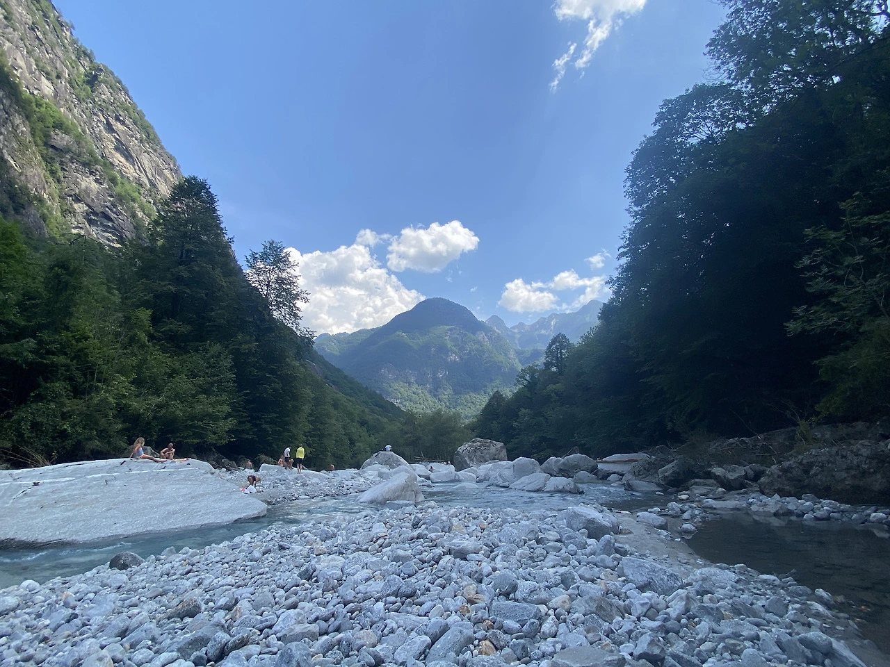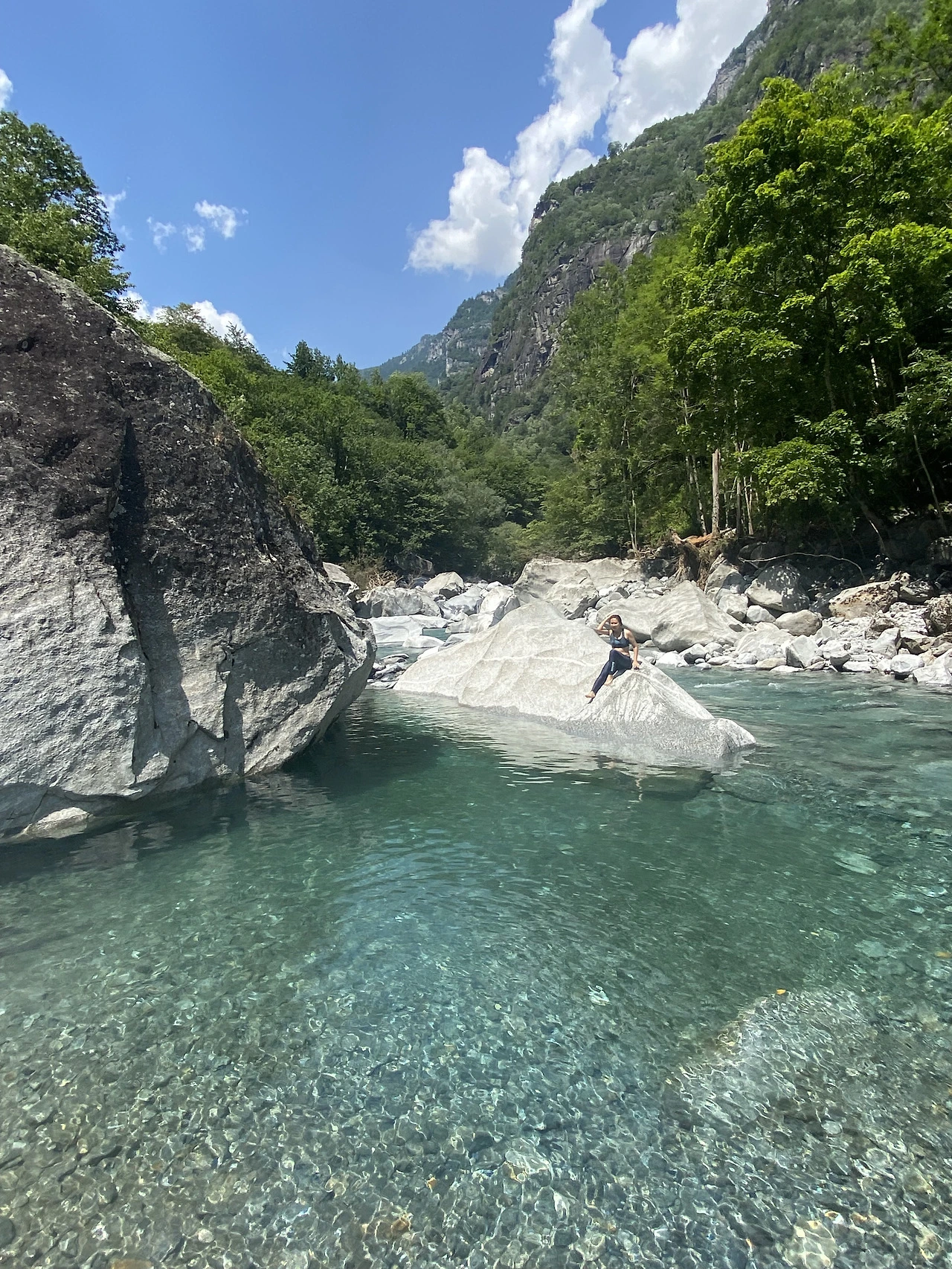 마을에서 북쪽으로 20여분을 달려 마지아 계곡(Valle Maggia)에 도착했다. 어릴 적 가족들과 피서지로 종종 갔었던 우리네 계곡의 모습과 많이 닮아 있어 반가운 마음이었다. 저 차가운 물 위에 커다란 수박 하나 띄워 놓고 가까운 물가의 캠핑존에서 삼겹살, 김치, 라면까지 세트로 해 먹으면 얼마나 좋을까 하고 군침부터 흘리는 나는 영락없는 한국인. 그러는 사이 얀과 그의 친구 프레드는 후다닥 윗도리를 벗어던져두고 건너편의 삐쭉 솟은 바위 위를 오른다. 저 영락없는 스위스인들.