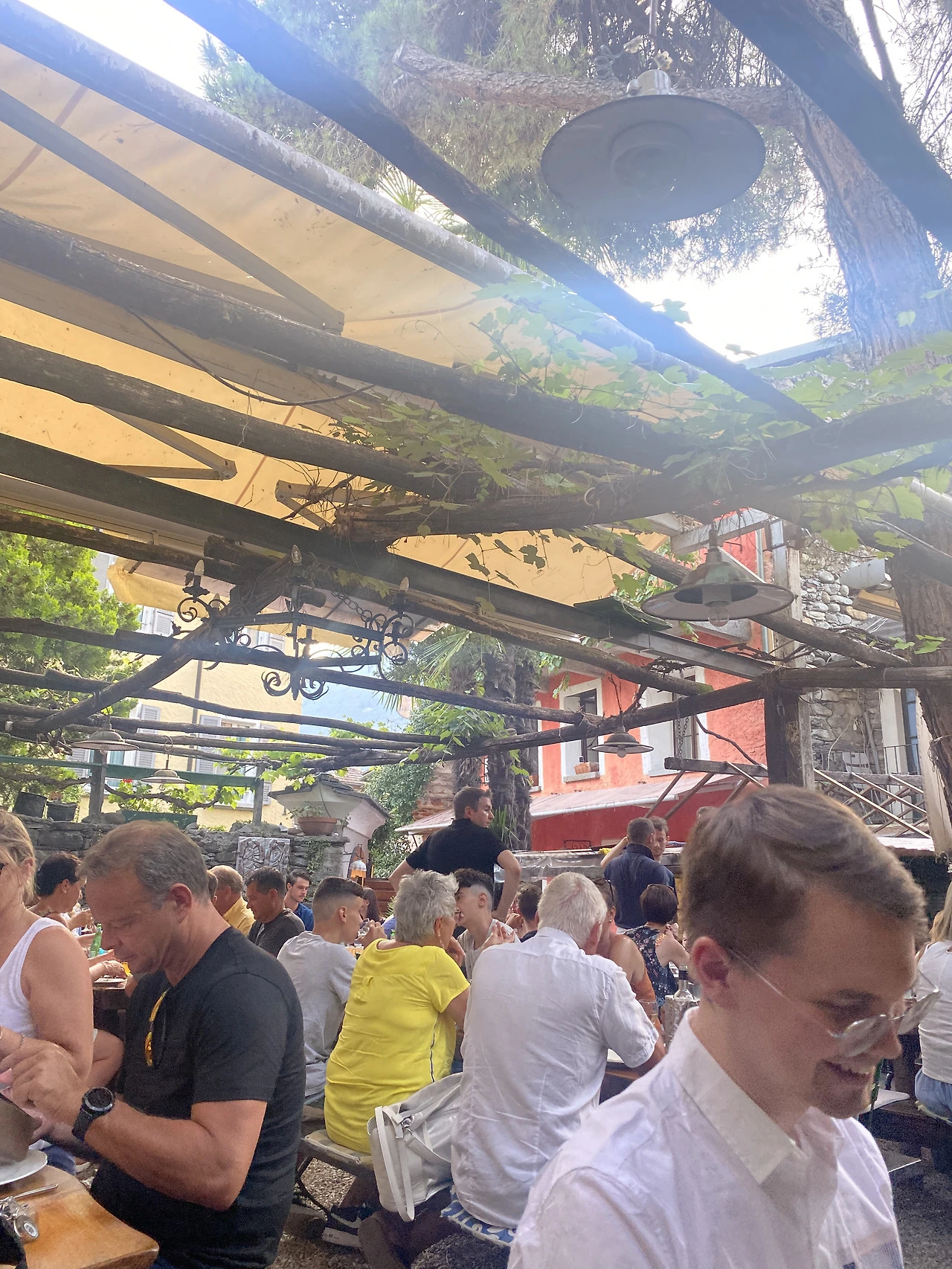 즐거운 물놀이 후 아스코나로 돌아와 허기진 배를 채우러 그로또 발도리아(Grotto Baldoria)로 향한다. 이 지역에 오면 반드시 들려야 하는 우리의 참새 방앗간과도 같은 곳. '그로또(Grotto)'란 이탈리아어로 식품 저장을 위한 천연 동굴이나 지하공간을 의미하는데, 시간이 흐르며 그 근처에 야외 테이블이나 벤치를 마련하고 소박하게 식사를 하는 문화가 생겨나면서 현재는 자연을 배경으로 한 가정식 식당을 그로또라고 부르기도 한다. 지역별로 다양한 그로또가 있는 티치노주. 그중에서도 우리가 가는 아스코나의 그로또 발도리아는 얀 할머니 때부터 가족들이 찾아가는 전통 있는 가게로 예약 없이는 착석조차 하기 힘든 '찐' 로컬맛집이다. 입구 바로 앞까지 꽉 들어찬 자리를 보며 맛집의 아우라를 실감한다.