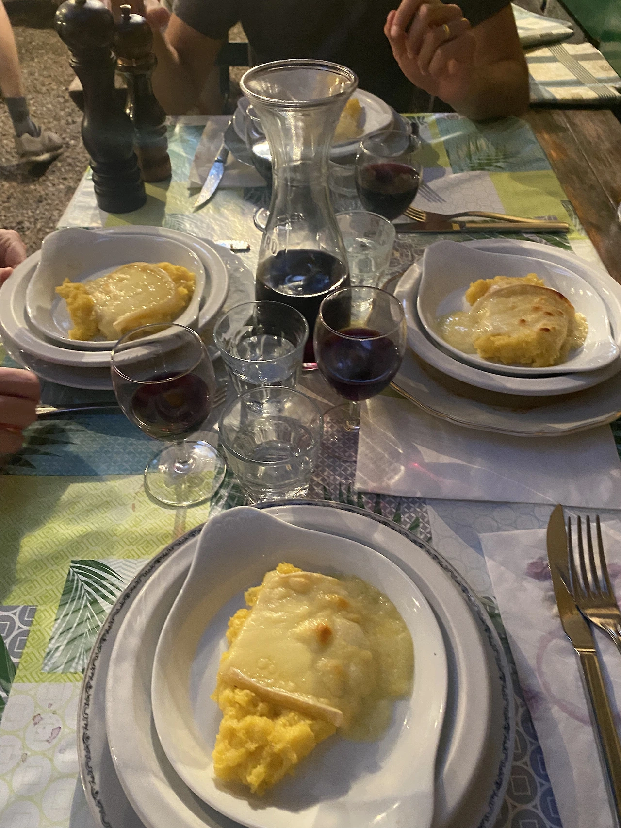 가정집 물병에 가득 담겨 나온 레드와인과 함께 손바닥만한 살라미를 시작으로 빵, 샐러드, 파스타, 폴렌타, 치즈 플레이트에 디저트까지. 투박하고 간단해 보이지만 맛은 전혀 간단하지 않은 음식들의 향연이 코스로 두 시간가량 이어졌다. 시원한 나무그늘 밑에 앉아 와인을 홀짝홀짝 들이키며 이탈리안 엄마 손맛이 잔뜩 들어간 음식을 즐기다 보니 바지단추가 풀리는 건 당연지사. 얀과 프레드는 입가심으로 이탈리아 증류주인 그라파(Grappa)까지 클리어하며 완벽하게 식사를 마무리했다.
