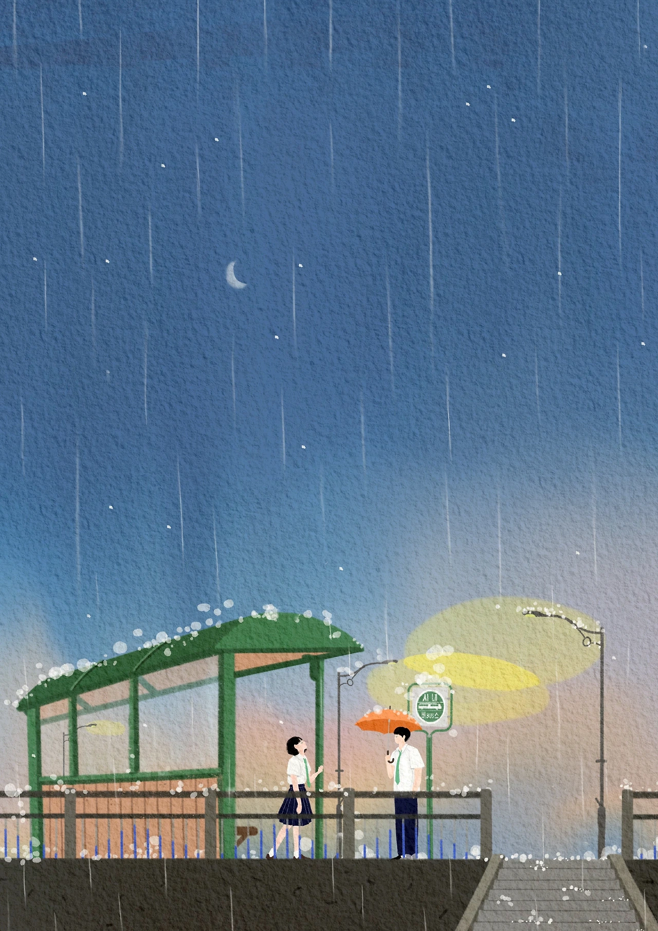 롱 베케이션 Long Vacation, 2020 digital 42x59.4cm 너는 내 생의 마지막 여름방학. 빗속 오렌지색 우산이 내 여름날의 상징인 건 넌 모르지. “사실 여긴 우리만 왔음 좋겠어” 그 말에 오늘이 방학의 마지막인걸 알아. 매해 장마가 시작되면 생각이나. 네가 다시 왔으면 좋겠다고. 있잖아, 그때 대답하지 못해서 미안해. 아직도 너를 열심히 참고 살아. 나도 첫눈이 오면 그땐 잊을게.