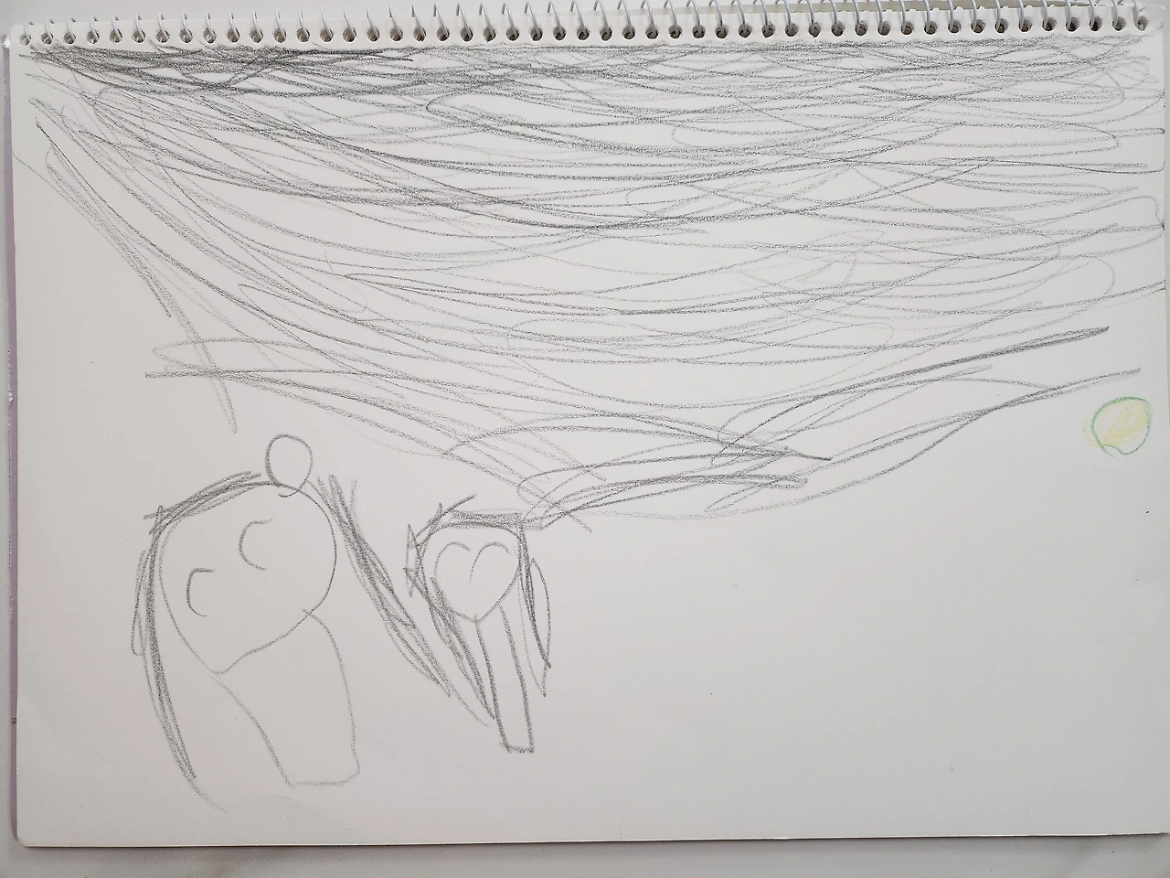 "별이야. 별을 잘 못 그려서 동그랗게 그렸어."(정말 너무 귀여운 말 아닌가. 뾰족뾰족한 별모양을 그리는 것이 어려워서 그냥 동그랗게 그리고선 별이라고 말하는 저 솔직한 답변에 심장이 흘러내린다.)