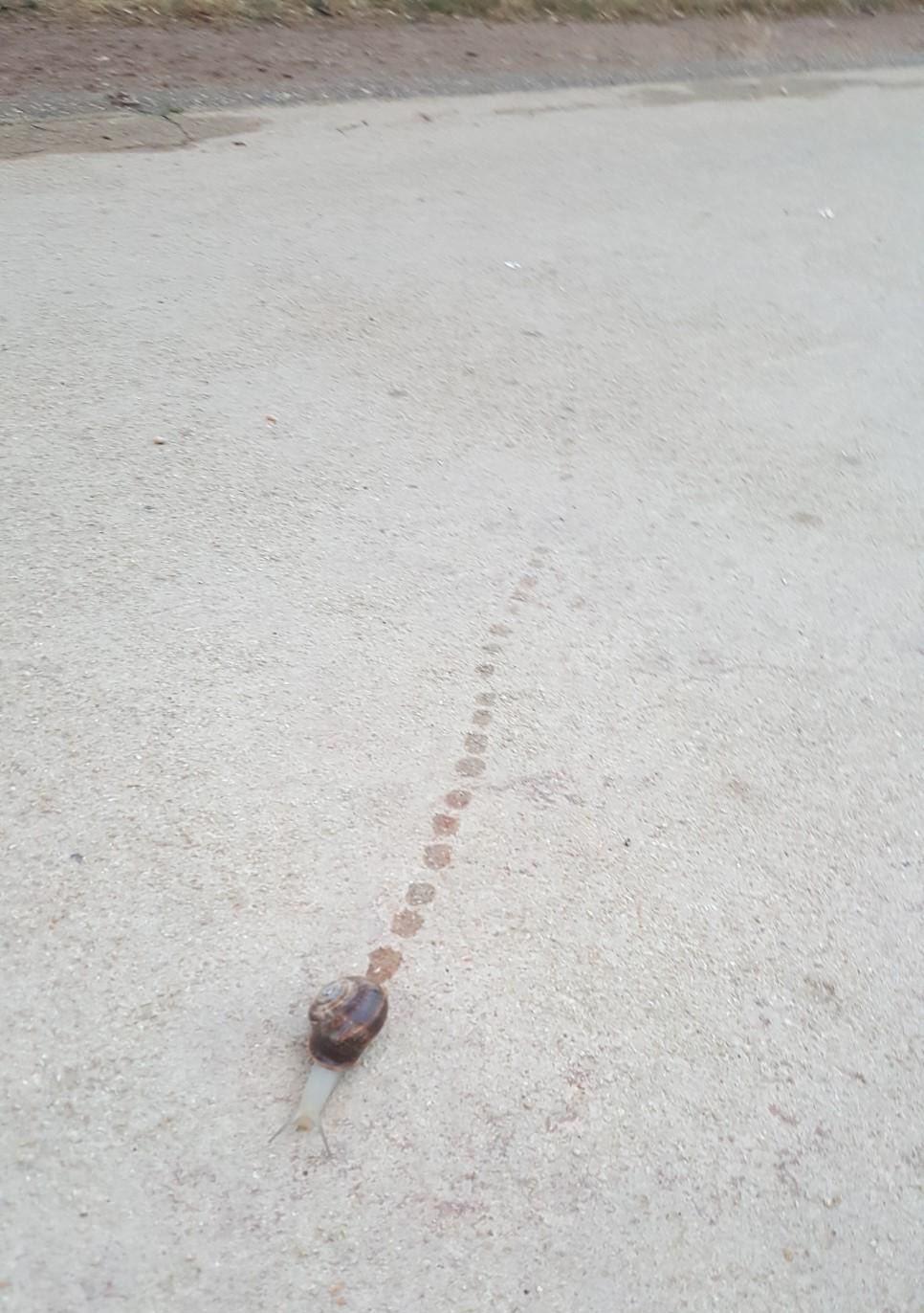 숲을 빠져나와 논길을 걸었다. 적당한 고지대에 울창한 나무들이 많아서였을까. 습도가 높은 편이었는지 달팽이들이 유난히 많이 보였다. 500원짜리 동전 크기는 족히 될 만한 달팽이들이 새벽부터 조금씩 보이기 시작하더니, 새벽이슬이 햇빛에 사라질 때쯤엔 거의 수십, 수백 마리가 산책을 나온 것처럼 길에 널려있었다. 길가에 있는 풀에는 이미 크고 작은 달팽이 열댓 마리가 앞뒤로 빼곡히 붙어있어 그 무게 때문에 풀이 길 쪽으로 기울 정도였다. 오랜 시간 걸어온 순례자들은 땅을 볼 여유도 잘 없거니와, 지치고 힘든 다리를 이끌고 걷는 와중에 수십 마리의 달팽이를 신경 쓸 틈도 없어 보통은 의도치 않게 밟고 가는 경우가 많았다. 자전거나 농기계에 깔린 달팽이도 많았을 정도로 달팽이 밭이었는데, 순례길을 걸으면서 생명을 죽인다는 게 영 탐탁지 않아 한 마리, 두 마리씩 주워서 다시 풀숲으로 보내줬다.