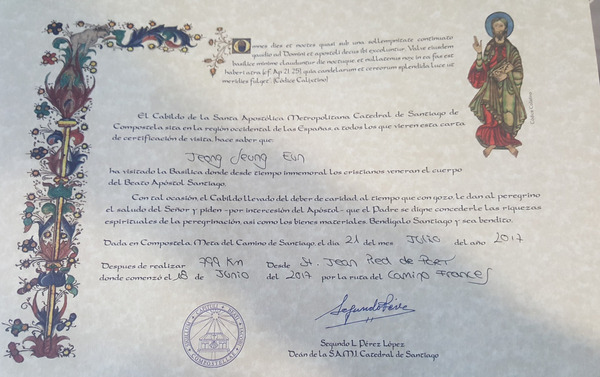 까미노 완주 증명서