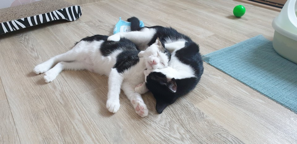 새끼였던 채로 발견된 세 마리의 고양이가 입양처에서 학대를 당했고, 두 마리의 고양이만 살아남아 동물병원에 입원해 있다고 했다. 기본 검진은 끝났지만 거의 죽어가던 아이들이라 한동안 가정집에서 케어가 필요하다고 했다. 한 마리는 꼬리가 잘려있었고 몸 군데군데 상처가 나 있었다. 한 마리는 사람을 경계했으며 가까이 다가가는 걸 거부했다. 한동안 독립된 공간 안에서 케어가 필요할 것 같아 빈 방 하나를 고양이 공간으로 만들었다. 두 마리는 한 배에서 태어난 형제 고양이었고, 방 안의 공간부터 본인의 공간이라 인식하며 안정감을 주는 것도 괜찮을 것 같았다. 영화 알라딘을 보고 온 날에 아이들을 데려왔고, 그들의 이름은 알리와 바바가 되었다.