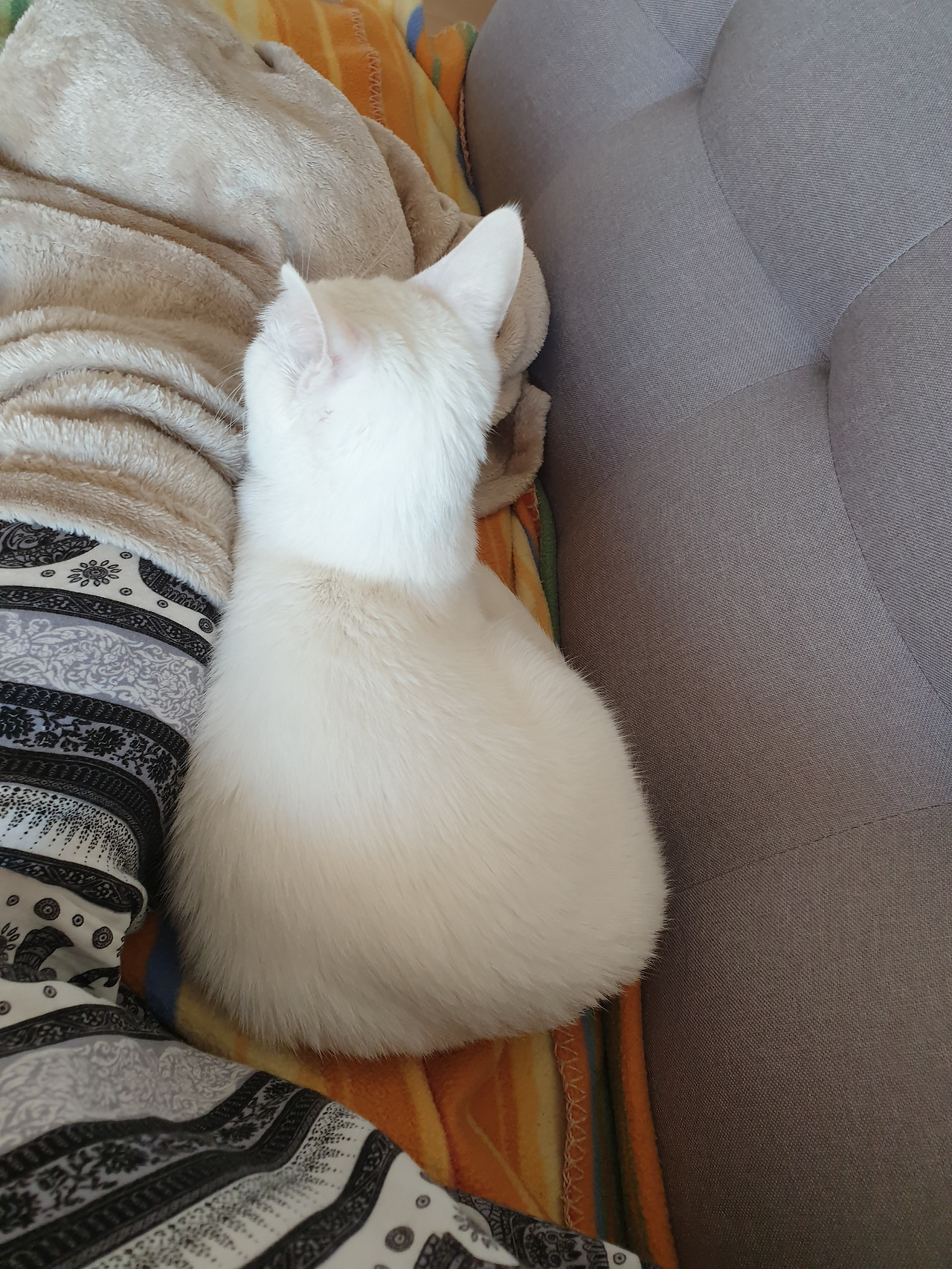 홍이는 약 1~2살, 설이는 5개월 정도로 추정되었다. 노란색 털이 가득한 홍이와 눈처럼 하얀 설이는 적응이 빨랐다. 태어난 지 3개월 차인 알리바바보다도 적응이 빨랐다. 처음에는 알리바바처럼 고양이 방에서만 생활하게 했지만 금세 적응을 하는 것 같아 방 문을 열어주었다. 홍설이는 소파에 자리를 잡았고 거실에서 낮잠을 잤다. 조금씩 기침을 하던 나는 시간이 지나면서 이내 기침도 하지 않게 되었다. 알레르기가 자연 치유되는 거였다니. 놀라울 따름이었다.